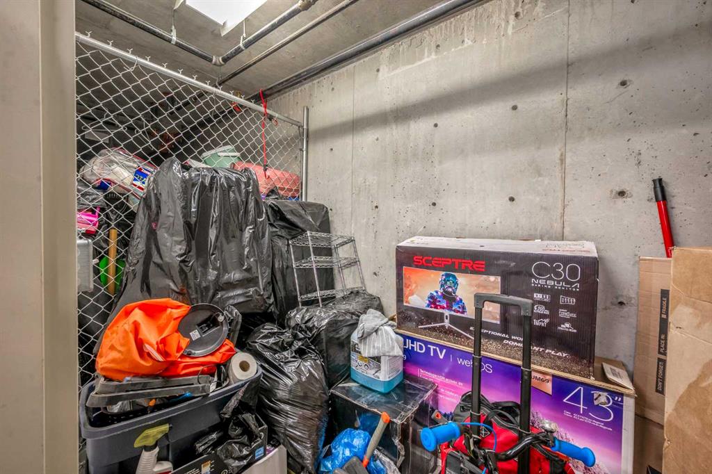 Additional highlights include in-suite laundry, a flexible den space, and a titled underground heated parking stall with a private storage room—a rare find in this complex.