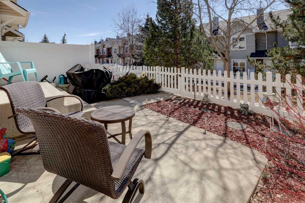 Life in Tuscany begins with a setting that connects everyday convenience with a welcoming community atmosphere. Thoughtful updates and a well-planned layout come together in this move-in ready 3 bedroom, 2.5 bathroom townhome designed to support both daily routines and relaxed downtime. Updated luxury vinyl plank flooring flows throughout the main level, creating a cohesive backdrop for an open-concept design that encourages connection. Gather in the living room where generous space and modern lighting with a fan enhance comfort while keeping the area bright and inviting. Meal preparation feels intuitive in the kitchen, where a centre prep island pairs with a peninsula offering breakfast bar seating, allowing conversations to continue while cooking. Dining takes place just steps away, maintaining easy flow without sacrificing definition between spaces. Tucked discreetly off the main area, a powder room adds everyday convenience without interrupting the layout. Upstairs, a primary retreat introduces a private 3-piece ensuite that eliminates the need to share, along with a walk-in closet that keeps everything organized and accessible. Two additional bedrooms create flexibility for family, guests or a home office, while a full 4-piece bathroom completes the upper level. Downstairs, laundry and ample storage keep seasonal items and extras neatly out of sight. Outdoor living extends to a charming front patio with sunny south exposure, enjoy entertaining family and friends while basking in the sun, where low-maintenance landscaping and a quaint white picket fence create a welcoming place to unwind. Mature trees and green space between neighbors allows for privacy and shade. Parking remains simple with a double attached garage at the rear, while the beautifully maintained complex adds to the overall sense of pride and care with its tranquil courtyard spaces. Daily life becomes even more convenient thanks to a location within walking distance to the Tuscany Club, schools, parks, transit and the Tuscany Market featuring Sobey’s, Starbucks and a variety of shops and services. Access to 12 Mile Coulee, off-leash areas, Lynx Ridge Golf Course and the Tuscany LRT station further enhances the lifestyle, while quick connections to Stoney Trail and Crowchild Trail make commuting straightforward.
