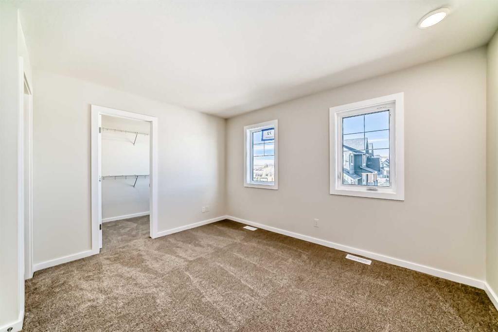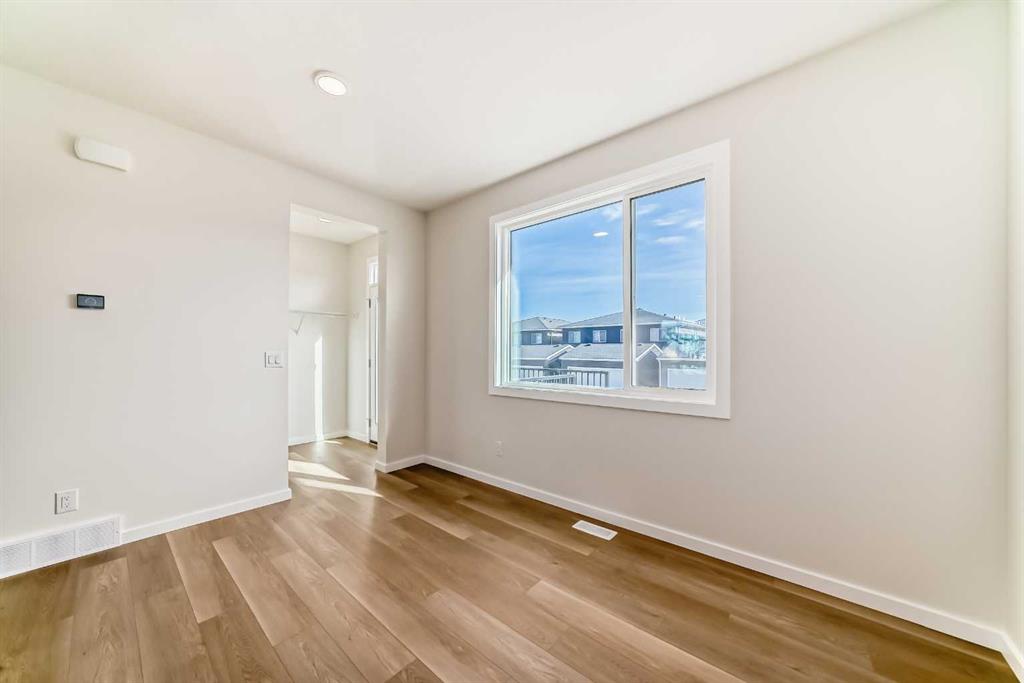 DUPLEX MEANS COMPROMISE? NOT HERE. This west-facing home rewrites the rulebook—designed to feel detached in all the ways that count. The curb appeal lands first: a FULL-WIDTH FRONT PORCH, balanced architecture, and the kind of proportions that make you pause before realizing it’s technically attached. Inside, 1,492 square feet unfold with intention. The main floor keeps flow and function equal—9′ CEILINGS, a 50″ ELECTRIC FIREPLACE with a built-in TV niche, and living/dining zones that stay connected without feeling crowded. The kitchen earns its keep with QUARTZ COUNTERS, FULL-HEIGHT CABINETRY, and a SILGRANIT UNDERMOUNT SINK. Gas rough-ins are already in place for both the range and the barbecue, while the installed electric appliances keep move-in simple. Upstairs, the primary bedroom stands out thanks to its windowed walk-in closet—a natural-light perk you rarely see at this price point. The ensuite brings a clean, modern feel with its tile-and-glass shower, creating a quiet little retreat at the end of the day. Two additional bedrooms offer flexibility for kids, guests, or home office needs, and laundry is right where you want it—steps from the closets, not a flight of stairs away. Downstairs, the SUNSHINE BASEMENT comes ready for whatever’s next: 9′ foundation walls, SEPARATE SIDE ENTRY, 200-amp panel, rough-ins for laundry as well as a wet bar, and an UPGRADED 80-GALLON HOT-WATER TANK are already waiting. Outside, an EAST-FACING RAISED REAR DECK with stairs down to grade catches the morning light, and a 20’×20′ parking pad leaves room for a future garage. Set in Sirocco at Pine Creek, this southwest pocket blends foothills scenery with modern convenience. MINUTES FROM ESTABLISHED AMENITIES and bordered by the PINE CREEK VALLEY and SIROCCO GOLF CLUB, it’s a community that already feels grounded but still has room to grow. Wide streets, calm architecture, and future walkable links to parks and shops keep the tone elevated yet approachable—a place designed for long-term comfort, not short-term trends. The paint is dry, the lights are on, and POSSESSION IS IMMEDIATE. Come see how this half-duplex lives larger than its label—proof that “attached” doesn’t have to mean “average.” • PLEASE NOTE: Photos are of a DIFFERENT Spec Home of the same model – fit and finish may differ. Interior selections and floorplans shown in photos.