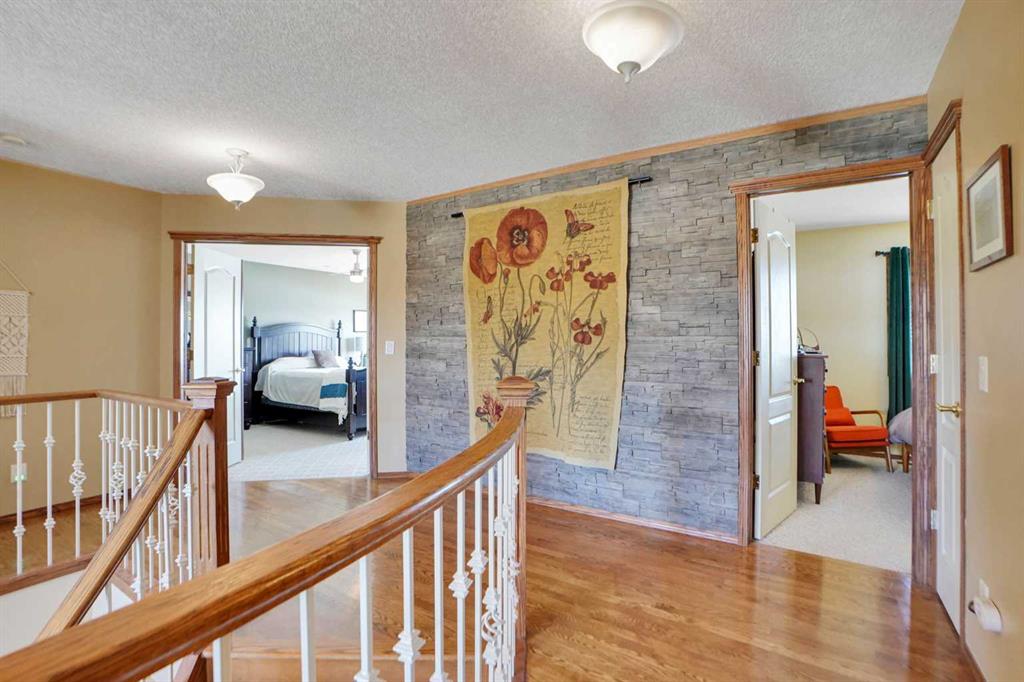 Beautiful Walkout Lake Home- First Time Offered. This beautiful Brick/Stucco home is conveniently located on a quiet child friendly street within blocks of all levels of schools and VIVO Rec centre, shopping, restaurants and transit. Easy access to airport with Deerfoot and Stoney Trail close by. The exterior of this home features beautiful landscaping with apple trees, patios and a firepit area. Upon entering this home you are greeted by a grand 2 story foyer with iron spiral staicase and gleaming hardwood floors. The spacious living room is cnnected to the formal dining room with a lake view. As you enter the bright island kitchen you will be impressed by the extensive granite counters and maple cabinets. What a great room for meal prep and entertaining. The kitchen breakfast nook allows you to enjoy the beautiful view and looks onto the family room with a rustic stone fireplace. The large raised 240 sf deck off the kitchen offers lake/park view for BBQ’s and good R&R. There is a spiral staircase that leads to lower walkout patio area. Upstairs features 4 bedrooms and the master bedroom comes with walk-in closet and 4 piece ensuite. The finished bright Walkout basement has in floor heating, one bedroom, a recreation room and a 2nd bedroom option, gas fireplace with built in bookshelves and bar. The 2nd kitchen with separate entrance could be a MIL suite. The garage is oversized and insulated. Don’t forget A/C for those hot summer days, Furnace/HWT/Garage Door/Decking 2022/23 and roof redone in 2025. This is great family home. Don’t miss this opportunity!!! 32 Harvest Park Way NE