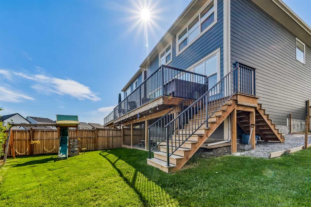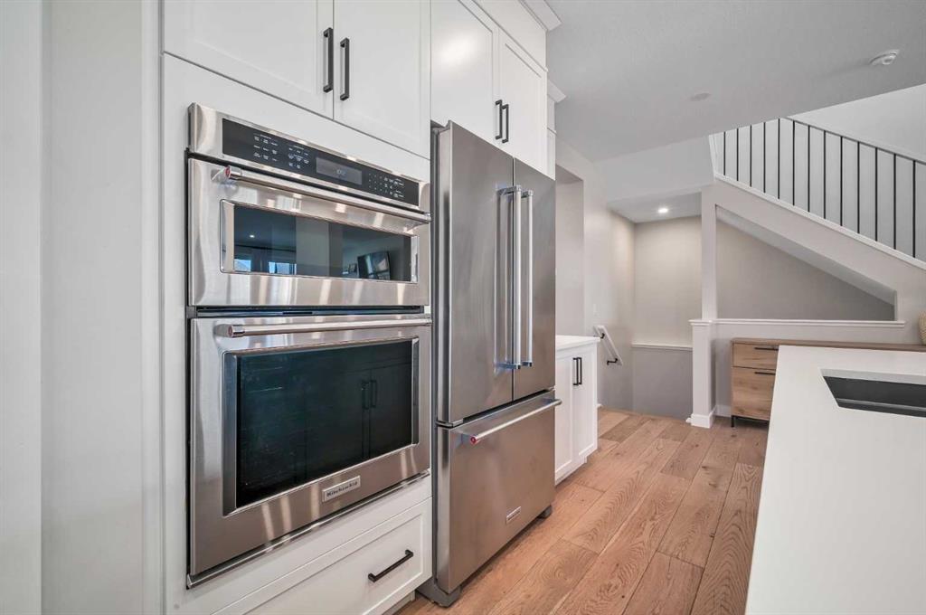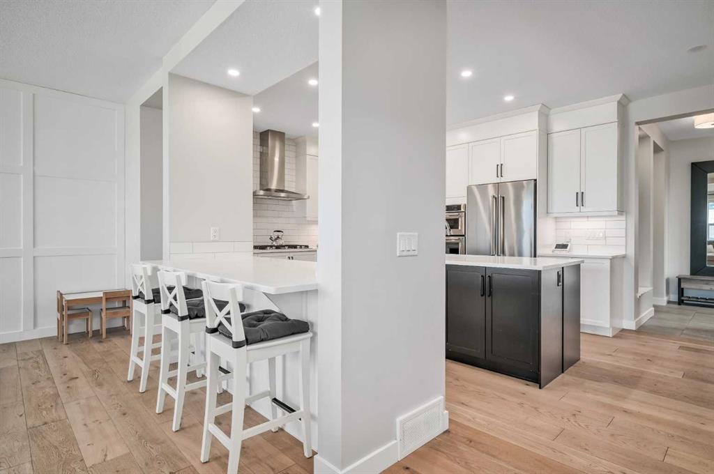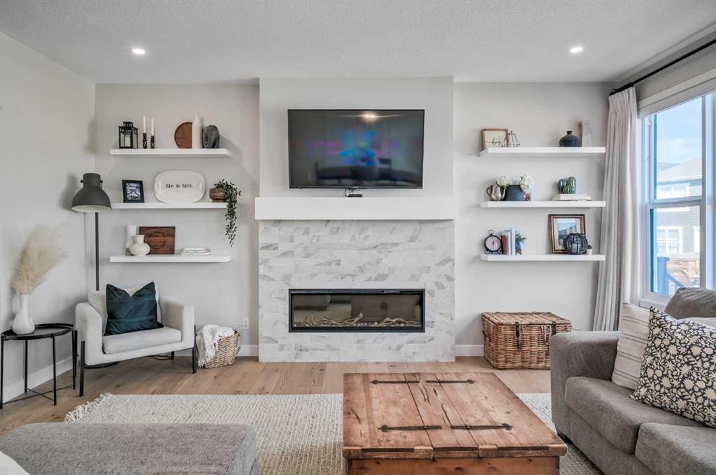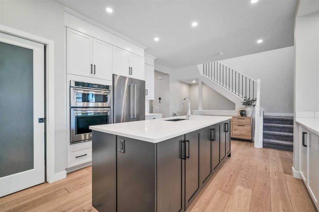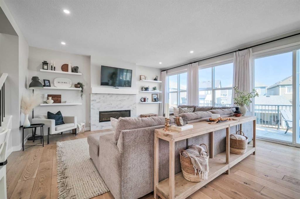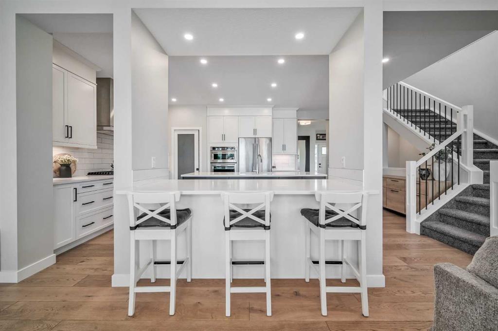 Welcome to this stunning original-owner Jayman-built home located in the highly sought-after lake community of Mahogany, where style, comfort, and modern efficiency come together to create an exceptional place to call home. Thoughtfully designed with 3 spacious bedrooms upstairs, a central bonus room, and an open-concept layout, this home offers the perfect balance of everyday functionality and elegant entertaining space. Step inside and be immediately impressed by the bright and expansive main floor, highlighted by wide plank engineered white oak hardwood flooring, soaring natural light that come from an upgraded full rear wall of windows, and carefully curated finishes throughout. The heart of the home is the spectacular chef-inspired kitchen, featuring full-height white cabinetry, luxurious quartz countertops, and two oversized islands, one of which functions beautifully as a welcoming breakfast bar and gathering space for family and guests alike. Premium appliances include a built-in refrigerator, wall oven and microwave, gas cooktop, and custom hood fan, creating a kitchen that is both visually striking and exceptionally functional. The inviting living room is centered around a stylish electric fireplace with tile surround and floating mantle, providing the perfect setting for cozy evenings and relaxed gatherings. Adjacent to the living area, the spacious dining room seamlessly connects to the large rear deck and beautifully landscaped pie-shaped backyard. A dual staircase from the deck offers convenient access for kids and pets while enhancing the flow of the outdoor space. Upstairs, the primary retreat is a true sanctuary featuring an elegant tray ceiling with ambient lighting and a luxurious spa-inspired 5-piece ensuite complete with dual vanities, dual walk-in closets, a makeup station, deep soaker tub, and an oversized tiled shower. Two additional generously sized bedrooms provide comfort and privacy for family members or guests. The central bonus room is perfect for movie nights, a playroom, or a relaxing lounge area, while the upstairs laundry room and large walk-in linen closet add everyday convenience. The upper main bathroom is thoughtfully designed with dual vanities and a functional layout with a pocket door separating the tub/shower and toilet area. The oversized double attached garage easily accommodates a full-size truck or SUV and includes a 220V electric plug for your EV. This impressive home is also built with energy efficiency in mind, featuring 12 solar panels that reduce electricity costs by nearly 50%, triple-pane windows, additional insulation, and a tankless hot water system. Smart home features such as automated lighting and thermostat control further enhance comfort and convenience. Living in Mahogany means enjoying one of Calgary’s most desirable lifestyles. This award-winning lake community offers private beaches, a stunning freshwater lake, parks, playgrounds, and extensive walking pathways. Book your showing and come on Buy!
