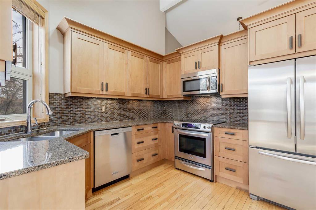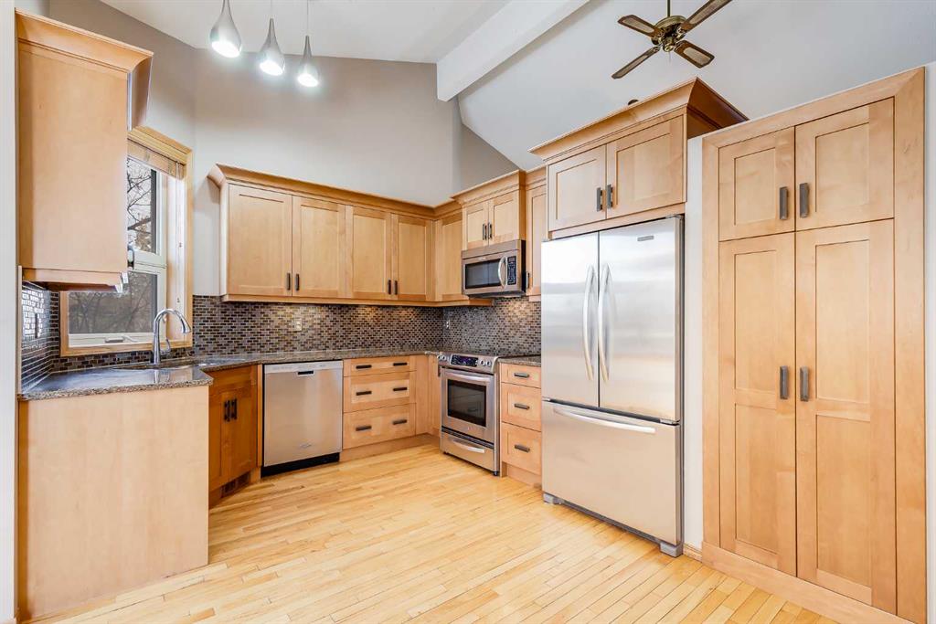 Step inside to a spacious front entry that opens to a bright living room highlighted by a charming bay window. The open-concept layout flows seamlessly into the dining area and stunning kitchen featuring vaulted ceilings, maple cabinetry, quartz countertops, stainless steel appliances, and a bright breakfast nook filled with natural light.