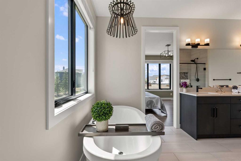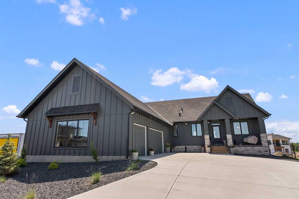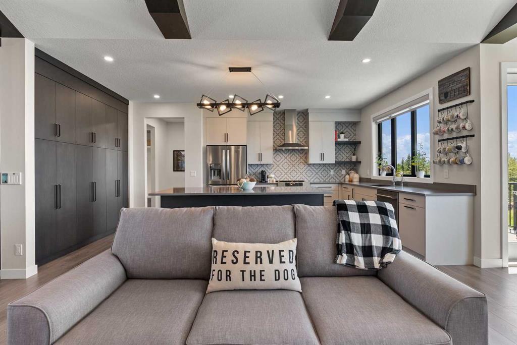 Discover this beautiful home just outside of Cochrane in Monterra. Offering nearly 3,400 sq ft of thoughtfully developed living space on a generous 0.45-acre lot. The main floor impresses with an open, airy design featuring vaulted ceilings that create a bright, inviting atmosphere. The spacious kitchen boasts a large island and soft-close cabinets, flowing seamlessly into the dining and living areas—ideal for hosting family and friends. The primary suite is a private sanctuary, with an elegant ensuite that includes a soaker tub, shower, and dual sinks, complemented by a large walk-in closet with built-in organizers.