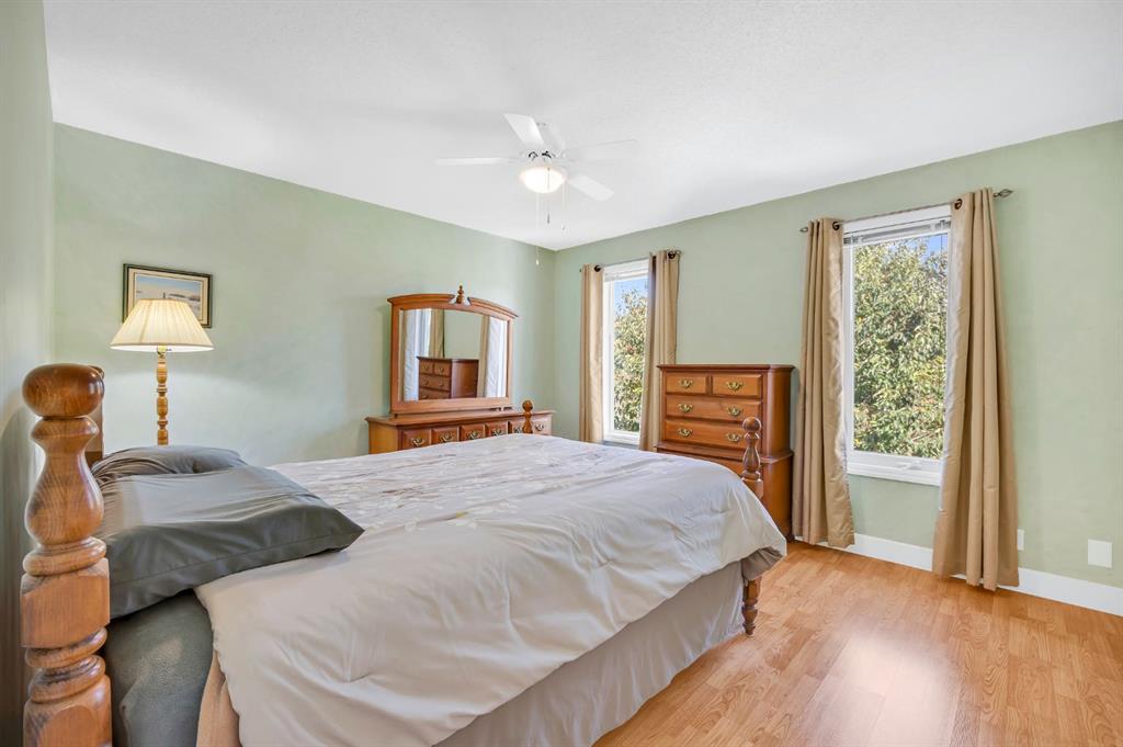 Pride of ownership resonates throughout this ORIGINAL OWNER occupied home in the COVETED community of RIDGEGATE. BACKING onto NOSE CREEK PARK, this absolutely stunning 4 level split will immediately capture your attention with its breathtaking front curb appeal. An immaculately manicured front lawn with shrubs & foliage. Canexel composite siding is bold, beautiful & ready for Alberta’s changing weather conditions. The accent brick offers a sophisticated focal point to the home while the RUBBER drive pad is not only beautiful but offers a child friendly buffer for those day to day spills. This home offers over 2600 sq ft of tl developed living space with a total of 4 bedrooms above grade. Sunshine floods through the large front bay & rear windows. A substantial sized living room with beautiful hardwood floors ushering you to a LARGE bright kitchen. Ample counter space, cabinets & pantry. Updated appliances, countertops, sink, garburator & fixtures. The kitchen is open to a spacious dining area. The rear door off the dining room leads to your large low maintenance deck & fully fenced back yard. Stunning mature trees, shrubs & flowers offer a balance of beauty & privacy in this meticulously maintained OASIS. Exceptional outside storage under the deck, corner shed & garden enclosure. Back inside the house you will note a large master with 3 pc ensuite & SKYLIGHT. An exceptional sized 2nd bed, comfortable sized 3rd bed & updated 4 pc main bath with jetted tub & SKYLIGHT. The 3rd level WALK OUT is ideal for someone with a DAYHOME/HOME BASED BUSINESS & is host to the 4th bed, a large family room with stone faced gas FP, 2 pc bath & washer & dryer. The basement offers a generous sized family room, Study/Den/Wine Cellar, 3 pc bath, & Storage room. The 2 lower level rooms could be converted to beds to suit the needs of a large family while the 3rd LEVEL WALKOUT could make this home a candidate to SUITE subject to city approval & permitting. Additional storage adjacent the utility room. The single oversized attached garage is fully insulated, drywalled & includes a plug in heater. Additional features of this home include all newer windows & doors on the top 3 levels. Triple pain windows on the main rear of the home & built in blinds on the back door. Roof , Canexel siding & furnace app 2014. Hot water tank app 2020. Upgraded attic insulation. Garburator app 2020.. Water softener. Vacu Flo & attachments. Phantom screen at front door. A/C app 2022. Underground sprinklers in the backyard. This GEM is surrounded by the tranquil beauty of NOSE CREEK PARK which is host to various community events including the Christmas Light Celebration. Nose Creek Park is home to Airdrie’s largest playground, fishing ponds, pickle ball courts & various trails. Walking distance to the new public library, grocery store, gym & other amenities. Nearby schools & quick access to the highway.