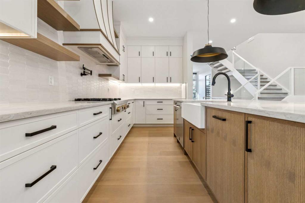 Tucked into a well located and established pocket of Hillhurst, this ELEGANTLY CRAFTED custom-built home offers elevated inner-city living just steps from Kensington, the Bow River pathway system, parks, dining and everyday amenities. Offering over 4,500 ft² of meticulously finished living space, this home is designed for modern family living and long-term lifestyle flexibility, featuring 6 bedrooms, 6 bathrooms, a walk-up lower level and insulated TRIPLE GARAGE with vaulted ceiling.