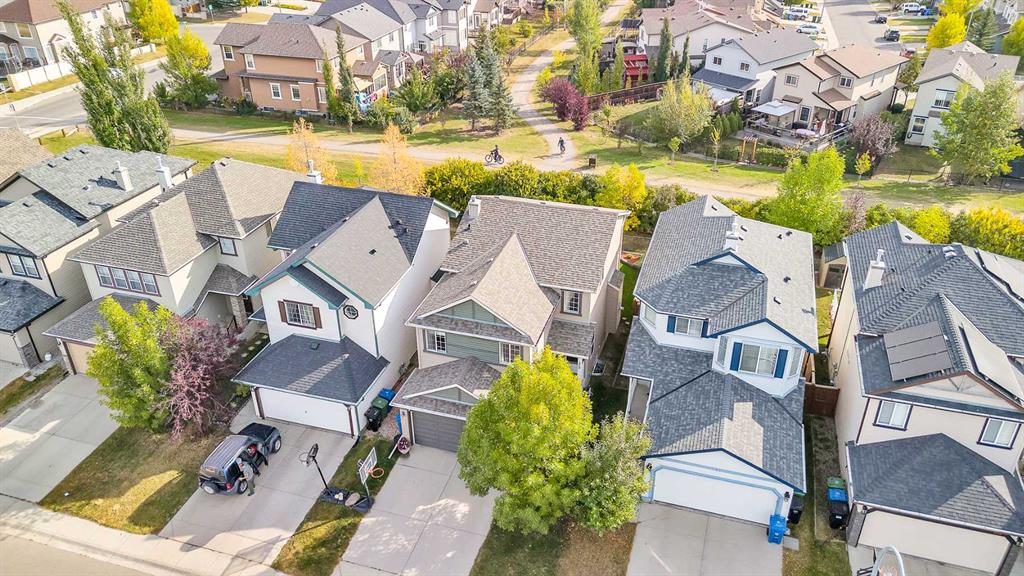 Elegantly upgraded 2-storey family home in Evergreen featuring 3 bedrooms, 2 full bathrooms. Exceptionally well-maintained one-owner home (never rented) on a quiet street with $60K in interior and exterior upgrades. Sunny and bright, move-in ready. This East/West-facing property offers over 1,600 sq. ft. of living space and backs directly onto GREEN SPACE and BIKE PATHS that lead to Fish Creek Park, perfect for families and nature lovers alike. Walking distance to three schools within the community ( Dr. Freda Miller School (K-5), Marshall Springs School ((6-9), Our Lady of the Evergreens (Catholic K-6). The main floor features open-concept design with fresh paint, large windows that fill the space with natural light, neutral tones, and durable vinyl plank flooring throughout. The updated modern kitchen (2023) is the heart of the home, showcasing quartz countertops, wood cabinetry, a new tile backsplash, stainless steel appliances and a large island with seating. A corner pantry adds functionality, while the adjacent dining area flows seamlessly into a cozy living room highlighted by a gas fireplace with a custom wood mantel. Step out onto the east-facing composite deck with views of the greenspace/pathway. Enjoy your private, sunny fully-fenced backyard with mature trees and direct access to paths, perfect for everything from morning coffee to evening dining, watching your kids biking or dog walks. A full 4-piece bathroom adds convenience for guests or pet bath. Upstairs has brand NEW CARPET throughout — you will find a spacious BONUS ROOM, perfect for a second living area, a home office, or a playroom, as well as three well-proportioned bedrooms. The primary suite includes large windows, a walk-in closet, and easy access to a full bathroom, creating a peaceful retreat. The large, unfinished basement with 2 big windows offers endless possibilities for future development. Additional upgrades include a new roof, garage door, siding, exterior paint, and windows screens that are under warranty. Explore nearby Fish Creek Park, walking paths, shopping (within a short drive, a variety of shopping options, such as Costco, Walmart and Superstore), recreation and quick access to Stoney Trail to go to the mountains or downtown. A commercial centre a short walk away that offers a convenience store, medical clinic and gas station. Families will appreciate the proximity to kids’ playgrounds and additional shopping destinations like Sobey’s and Shopper’s Drug Mart, making this an ideal location for everyday living. Call to book your private viewing today.