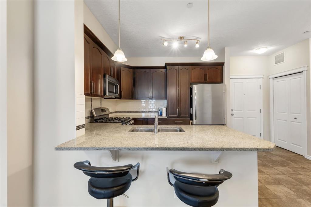 Welcome to this beautifully updated 2-bedroom, 2-bathroom condo with 2 parking stalls and a private balcony with a BBQ gas line—perfect for relaxing or entertaining. The modern kitchen features granite countertops and plenty of storage, ideal for cooking and hosting. Both bedrooms have ensuite bathrooms, and the second bath also opens to the main living area for guests. Bright and airy living and dining spaces are filled with lots of sunlight, creating a warm and inviting atmosphere. The unit has been freshly painted, and additional storage in the basement adds extra convenience. Located in a well-managed building close to shopping, restaurants, and everyday amenities. Immediate possession available—move in and enjoy!