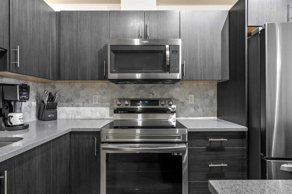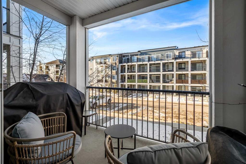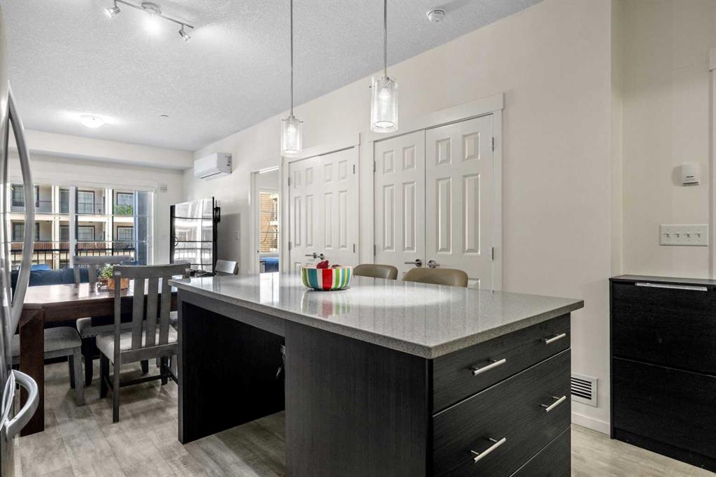 Welcome to #3203 – 215 Legacy Boulevard SE, a beautifully designed and maintained condo with a BRAND NEW REFRIGERATOR, STOVE and AIR CONDITIONER with HIGH QUALITY VINYL PLANK FLOORING offering a thoughtfully planned interior in one of Calgary’s most desirable southeast communities. From the moment you enter, you will appreciate how the layout balances comfort, functionality and modern style, creating a welcoming space that feels both open and practical. Walking in, you’ll find the kitchen which serves as the heart of the home, featuring ample quartz counter space and cabinetry for storage and and ISLAND that make meal preparation and entertaining easy. The adjoining dining area flows seamlessly into the living room, creating an inviting setting for everyday living as well as hosting family and friends. Large windows and sliding doors lead to a PRIVATE BALCONY, allowing natural light to fill the space and providing an ideal spot to enjoy morning coffee or unwind at the end of the day. The primary bedroom offers a comfortable retreat and includes a walk-in closet along with direct access to a private ensuite bathroom. A second bedroom provides flexibility and can easily accommodate guests, a home office, or a creative workspace. A well-appointed main bathroom and the convenience of in-suite laundry complete the interior, ensuring everyday routines are efficient and comfortable. Residents benefit from the security and convenience of a well-maintained building with elevator access and A TITLED UNDERGROUD PARKING STALL. The private balcony extends your living space outdoors and enhances the overall sense of openness throughout the suite. Located in the vibrant Legacy community of southeast Calgary, this home offers an exceptional lifestyle surrounded by natural beauty and modern amenities. The neighbourhood is known for its expansive environmental reserve, scenic walking paths, and thoughtfully designed green spaces that encourage outdoor activity year-round. Residents enjoy easy access to shopping districts, restaurants, cafés, and essential services, all within close proximity. With nearby schools, playgrounds, and an interconnected trail system, Legacy provides a strong sense of community while remaining well connected to major roadways and the rest of the city.