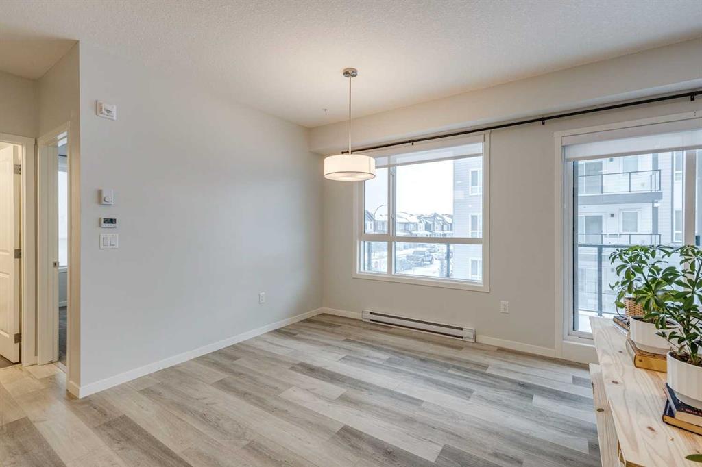 Welcome to this beautifully upgraded 2-bedroom, 2-bathroom condo in the vibrant, ever-growing community of Carrington. Blending modern style with everyday comfort, this bright and spacious home is perfect for first-time buyers, downsizers, or savvy investors. The open-concept floor plan is enhanced by 9-foot ceilings and durable luxury vinyl plank flooring, while expansive windows fill the space with natural light and create an inviting atmosphere for both relaxing and entertaining. The contemporary kitchen is a true showpiece, featuring full-height cabinetry, sleek quartz countertops, stainless steel appliances, and a generous island with seating—perfect for casual meals or hosting family and friends. The living area flows seamlessly onto a private balcony, offering a peaceful spot to enjoy morning coffee or unwind at the end of the day. A thoughtful split-bedroom design provides excellent privacy, making this layout ideal for roommates, guests, or a dedicated work-from-home setup. Both bedrooms are spacious and well-appointed, with the primary suite offering a walk-through closet and a stylish ensuite. A second full bathroom and an oversized laundry/storage room add to the home’s convenience and functionality. Titled underground parking completes the package. Situated steps from scenic parks, pathways, and Carrington’s expanding selection of shops and amenities, this location also ensures effortless connectivity with quick access to both Stoney Trail and Deerfoot Trail. Stylish, practical, and perfectly located—this exceptional condo is ready for its next owner. Book your private showing today.