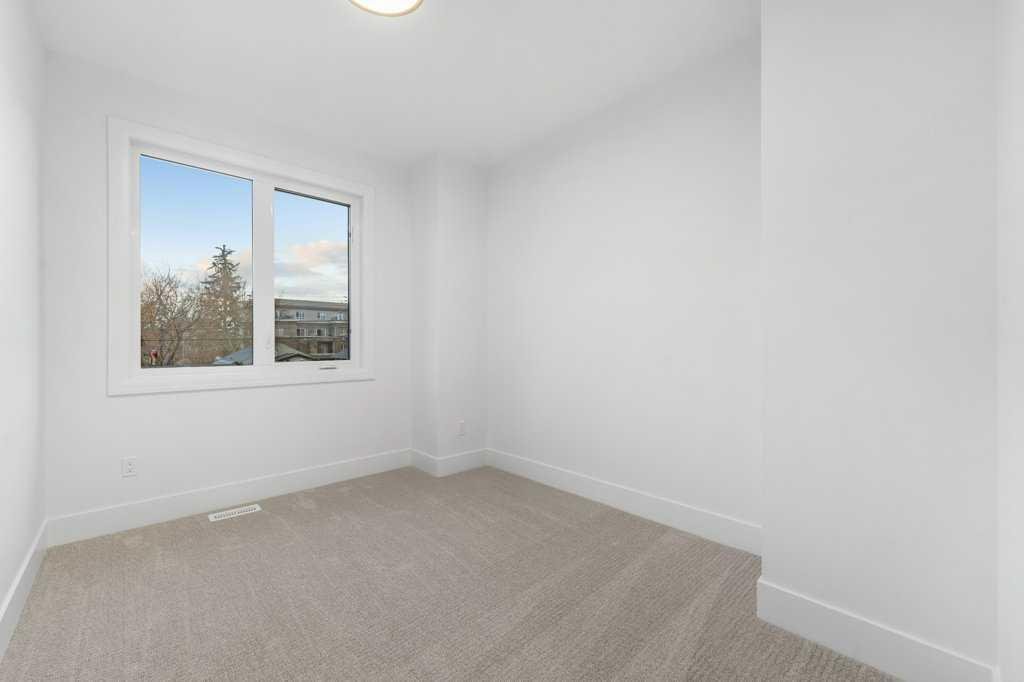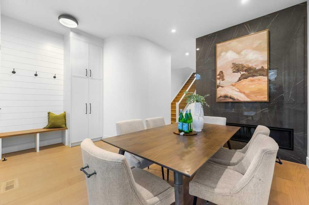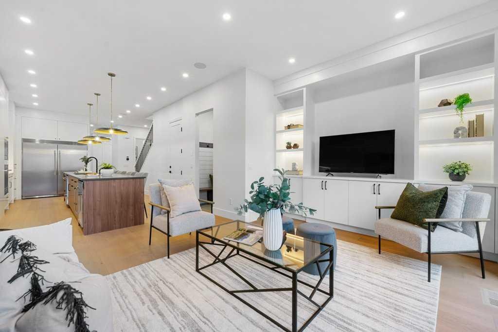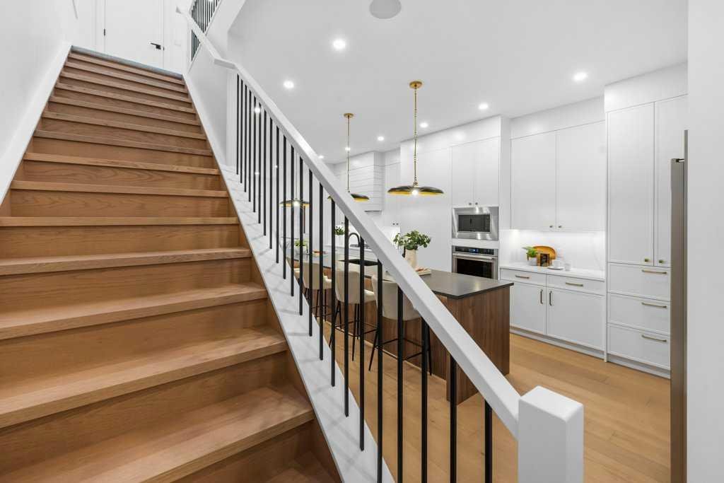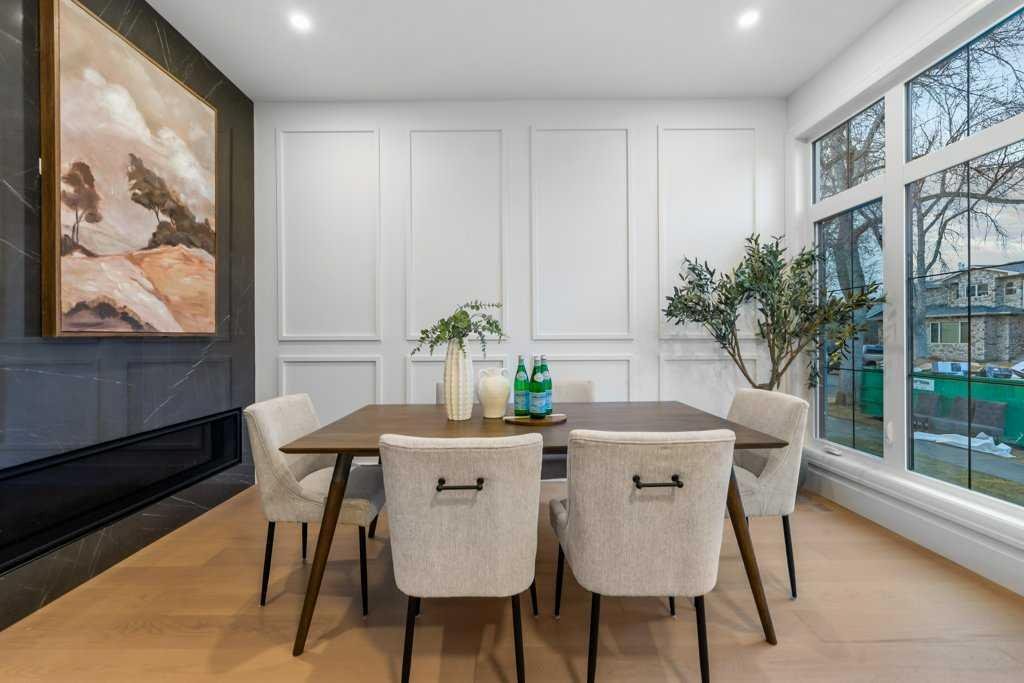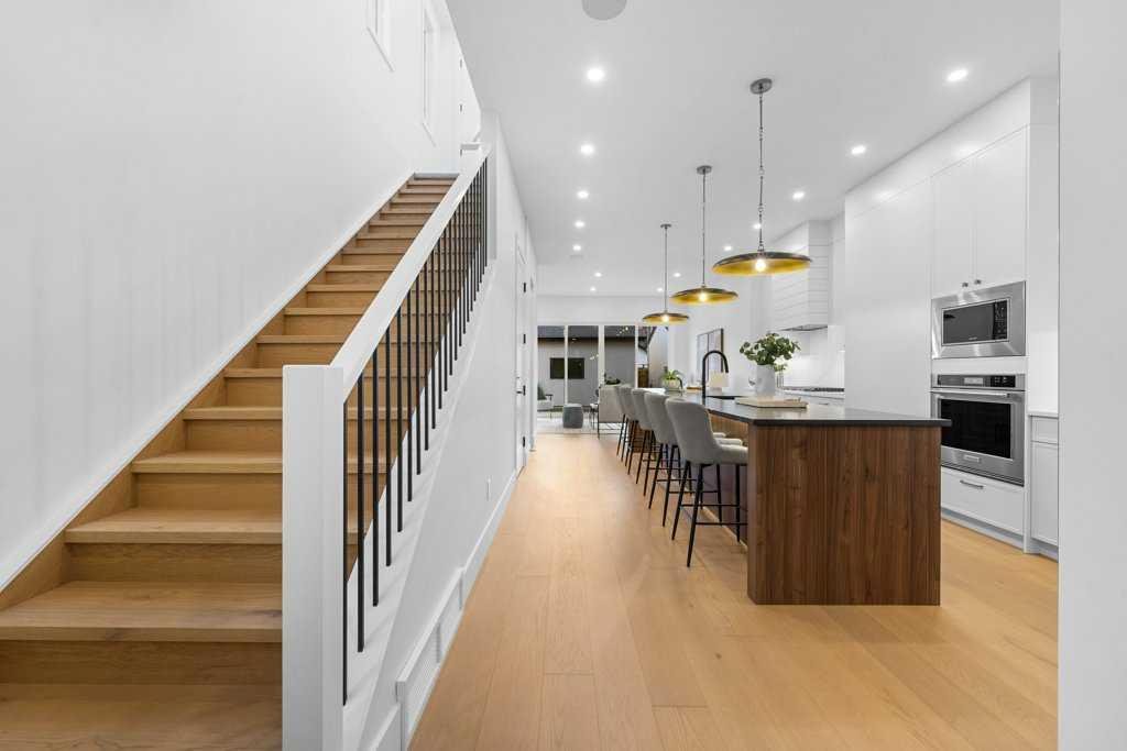 BRAND NEW Executive Detached Home in Mount Pleasant…steps from the ever-popular “Balmoral Circus Park”! Such an incredible “family” inner-city neighbourhood, with expanded public park areas and playgrounds! The architectural design of this masterpiece seamlessly blends contemporary “high-end” finishes with timeless elegance. Featuring an open-concept plan and large “triple-pane” windows that flood the space with natural light, this home promises to impress! Be welcomed to the foyer (with seating) and formal dining area (could be flex room) with a feature fireplace and a wainscotting detailed wall. The gourmet kitchen boasts a “waterfall quartz” island large enough for seating six guests! The high-end appliance package includes a gas cook-top and built-in appliances, plus a bar fridge. The lighting creates such ambience with the under valance lights on the cabinetry, as well as, on the island. Enjoy the great room with built-ins and under cabinet ambient lighting on either side of the TV area. Such an elegant space to entertain or just relax. A separate entrance has been created at the side door that leads to the 2 bedroom basement “illegal suite” (*legalization should be finalized within a week by City of Calgary). A private mud room with separate entrance to the home is adjacent. A powder room completes the main level. Ascend to the upper level where the master suite with vaulted ceilings and ambient lighting invites rejuvenation and relaxation (with its 5 piece “spa-like” ensuite, complete with a steam shower and tear-drop soaker tub). The additional two bedrooms are similar in size and share the main 4 piece bathroom. An upper laundry room completes this level! An “illegal” suite (*built according to City of Calgary “legalization” standards and awaiting final inspection) is the feature of the lower level. The area boasts 9 ft. ceilings, is spacious with an open-concept kitchen and living area, plus two bedrooms and a full 5 piece bathroom (dual sinks). In-floor heating throughout basement! Luxury wide vinyl plan flooring (floating) adorns the space. A storage area, plus a separate laundry with full-sized washer and dryer complete this level! The fully fenced yard is landscaped, with an oversized deck. A detached garage is insulated and drywalled, with gas line and water outlet. This “family-friendly” special neighbourhood awaits you. Let us give you a tour of this brand new masterpiece!