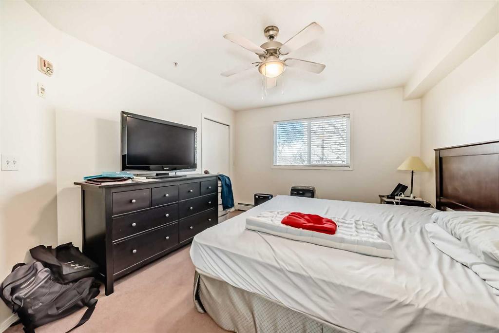 Welcome to this bright and spacious southwest corner unit, perfectly positioned to overlook a large greenspace — offering both privacy and picturesque views. With windows on two sides, this home is filled with natural light throughout the day. Featuring one of the largest floorplans in the building, this condo offers an open-concept layout designed for comfort and functionality. The spacious kitchen includes plenty of cabinet and counter space, along with an eat-up bar that’s perfect for casual dining or entertaining. The adjoining dining area flows seamlessly into a large living room highlighted by a cozy corner gas fireplace — ideal for relaxing evenings. The home offers two generous bedrooms and two full bathrooms, including a primary suite with a walkthrough closet leading to a private 4-piece ensuite. Additional conveniences include in-unit laundry and a titled underground parking stall for year-round comfort. Set in a well-maintained complex and just steps from parks, pathways, and local amenities, this home combines space, sunlight, and convenience — an ideal opportunity for first-time buyers, downsizers, or investors alike.
