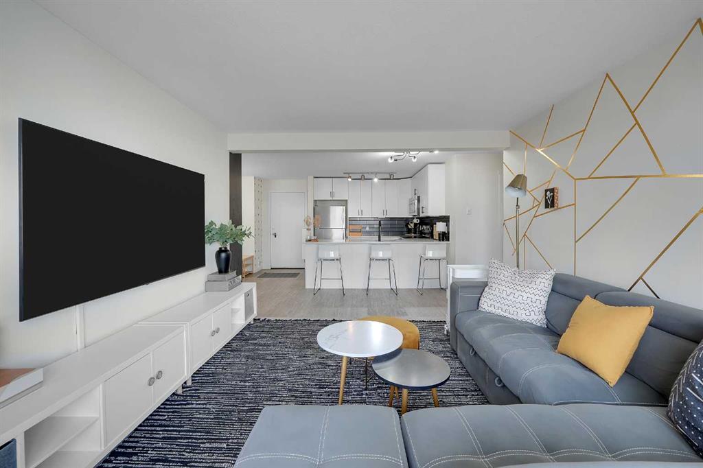 Step into this bright, open-concept sanctuary where modern comfort meets an amenity-rich lifestyle at McCall Landing. This meticulously maintained home welcomes you with a seamless blend of durable laminate flooring and plush carpet, elevated by a suite of upgrades that truly set it apart. The kitchen features upgraded new backsplash, a gourmet sink, and sleek high-arc faucets. The bathroom is refreshed with a new bathtub and contemporary fixtures. Designer lighting throughout the dining, living, and sleeping areas creates a warm, sophisticated ambience, while smart storage solutions; including integrated laundry shelving and expanded closet systems in both bedrooms. Your morning coffee will taste better on the private balcony where unobstructed views offer a peaceful escape from the city bustle. Peace of mind is built right in with triple-pane windows and advanced noise-reduction engineering in the floors and walls, making this one of the quietest buildings in the Northeast. Beyond your front door, the McCall Landing advantage gives you exclusive access to a private fitness centre, a vibrant community lounge for hosting, a community garden with dedicated grow beds, and even a fenced dog run for your furry companions. Complete with a heated underground parking spot and seamless access to Stoney Trail, the Airport, and the diverse shops of Skyview, this move-in-ready gem is the perfect opportunity for those who refuse to compromise on quality. Book your showing today!