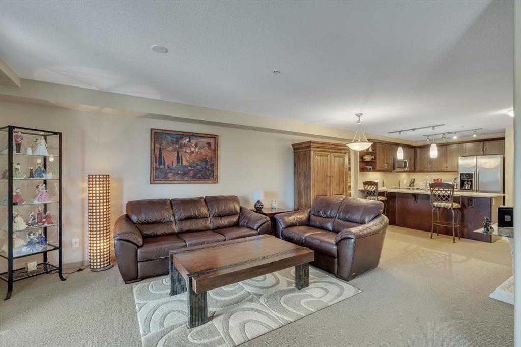 FANTASTIC 2nd Floor One Bedroom + Den Home in the highly sought after Monarch 18+ complex featuring new air conditioning! This beautifully maintained condo offers a stylish kitchen with striking dark cabinetry, newer rare real quartzite stone countertops, tile flooring, breakfast bar, and stainless steel appliances including an OTR microwave/hood fan, water and ice dispenser in fridge and smoothtop stove. The spacious primary bedroom features a walk through closet leading to a practical 4 piece bathroom. A bright and versatile den off the living room provides the perfect space for a home office, study, or guest area ideal for a Murphy bed/desk combo when flexibility is needed for friends or family. Additional highlights include in-suite laundry with washer and dryer, in-floor heating, air conditioning, and a gas BBQ hookup on the balcony. You’ll also appreciate the titled underground parking stall and a large enclosed storage unit. You will really enjoy two beautiful open air courtyards, secure underground parking, daily on site maintenance, and an inviting lobby with multiple seating areas! The location is exceptional steps to walking paths along the pond and transit, and just moments from McKenzie Towne High Street, offering shops, grocery stores, medical offices, and charming cafés. With easy access to major roadways, direct transit to downtown, proximity to South Health Campus, Seton, and the extensive amenities of 130th Avenue, the convenience of this location is unmatched. This pet friendly building (with board approval) is well managed with a healthy financials giving you peace of mind and long term value. Whether commuting downtown, enjoying nearby parks and pathways, or planning weekend escapes, this home delivers the perfect blend of comfort, convenience, and low maintenance living. A must to see. Schedule your private viewing!! Call today.