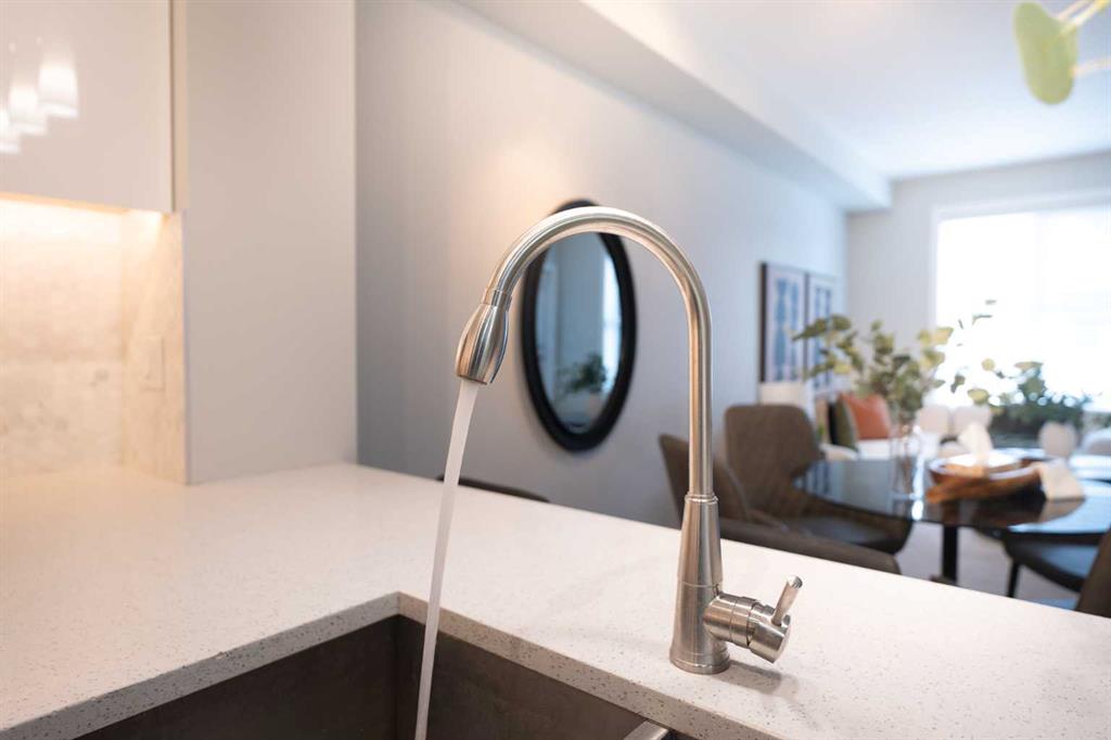 Builder’s Winter Promotion – While Quantities Last! Price won’t last at this unbeatable location and value. Looking for upgrades in a spec unit? This might be the one. Welcome to the Axess Building, located in the heart of the historic Currie Barracks community! This beautifully upgraded 1-bedroom home features soaring 9-foot ceilings and a bright south-facing view overlooking lush greenery. Step inside to discover luxury vinyl plank flooring and an abundance of natural light streaming through oversized windows. The modern kitchen offers a stunning blend of crisp white and rich dark cabinetry, upgraded stainless steel appliances including a gas range, quartz countertops, and a designer tile backsplash. An extended counter seamlessly connects to the dining area—perfect for entertaining. The spacious living room opens to a top-floor balcony complete with a gas BBQ line and unobstructed southern views—ideal for relaxing and enjoying Calgary’s beautiful sunsets. The generously sized primary bedroom features a walk-through closet with direct access to an elegant 4-piece bathroom complete with tile flooring, quartz countertops, and a deep soaker tub. Just off the kitchen, a versatile nook provides the perfect spot for a home office or additional storage. Additional highlights include in-suite laundry, heated underground parking with a car wash bay, and a private storage locker conveniently located in front of your parking stall. All this in a prime location—just steps from Mount Royal University, scenic walking paths, parks, shopping, and with easy access to Marda Loop and Downtown Calgary via Crowchild Trail. A truly exceptional opportunity to own in one of Calgary’s most desirable communities!
