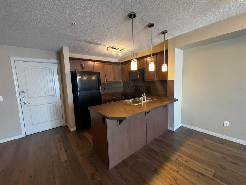 Welcome to this well-maintained, west-facing one-bedroom unit offering mountain views on clear days. This functional layout features new carpet and hardwood flooring in the kitchen and living room, along with a dedicated office/computer space—ideal for working from home.