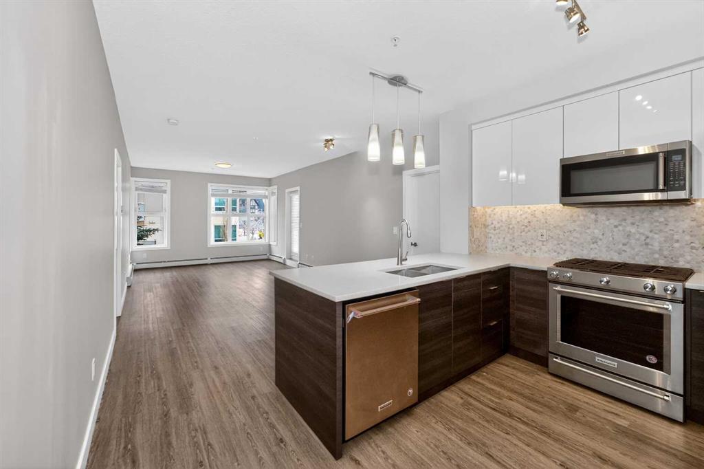 Welcome to your new home! This beautiful 2-bedroom, 2-bathroom corner unit is located on the second floor in the sought-after Currie Barracks community. With 9-foot ceilings and large windows, the home feels bright, open, and spacious. The primary bedroom offers plenty of room for a king-sized bed and features a walk-in closet, double sinks, a deep soaker tub, and a separate stand-up shower. The second bedroom is located on the opposite side of the unit for added privacy and has convenient dual access to a full bathroom, making it ideal for guests or family. The modern kitchen includes two-tone white and espresso cabinets, a marble backsplash, quartz countertops, and upgraded appliances including a gas range. The home is finished in neutral colors, making it easy to personalize. The unit also comes with a titled heated underground parking stall and additional storage. The building offers great amenities including 26 underground visitor parking stalls, a car wash bay, and is pet-friendly. Condo fees have remained consistent since the building’s inception. The location is excellent, with parks, pathways, a dog park, pubs, restaurants, and shopping nearby. Downtown is only a 7-minute drive away, and Mount Royal University is within walking distance. Don’t miss this opportunity, book a showing with your favorite agent today.