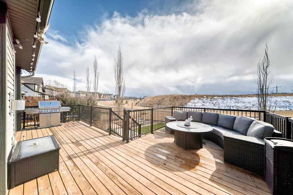 Additional highlights and upgrades include: Central air conditioning, vauled ceilings, fully finished basement with rec room, wet bar & in-ceiling speakers, low-maintenance backyard with artificial turf and patio stones, full-sized deck with BBQ gas line, backing onto green space and a walking path, garburator, laundry cabinetry, water softener, and Cat5 wiring in all bedrooms. This home truly offers comfort, style, and functionality—a must-see!