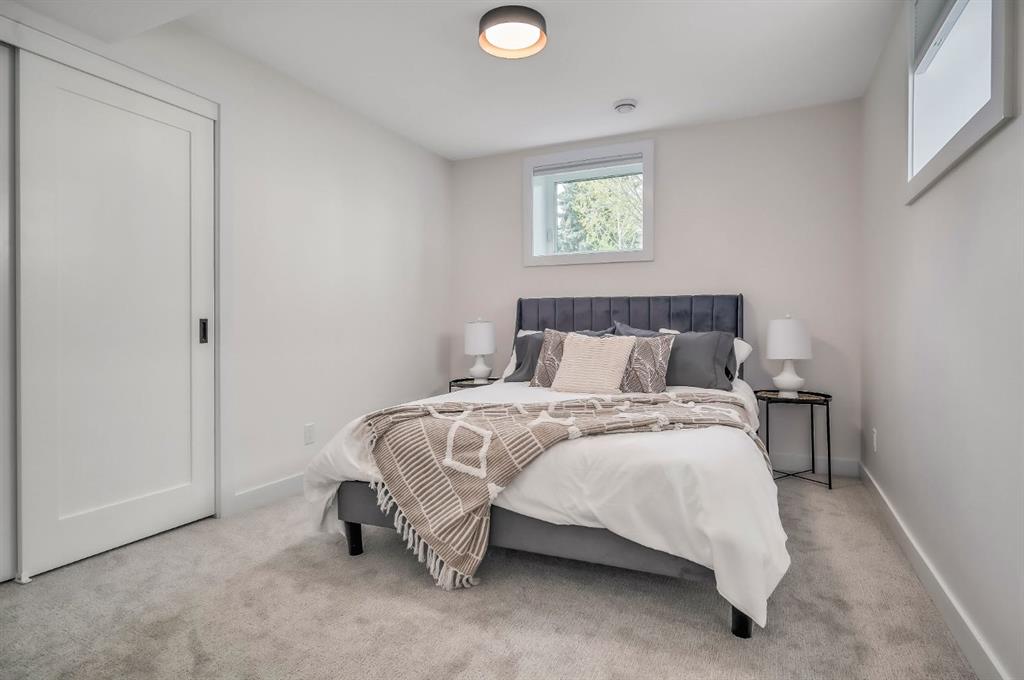 Located on a quiet street, this location cannot be beat! Enjoy over 2900 sqft of finished living space with an abundance of natural light throughout. This 6 bedroom, 3 bathroom home was professionally renovated with extensive improvements including new hardie board, a new furnace, new insulation, new electrical, new plumbing, and new windows and doors. High end updates to the interior include a brand-new custom kitchen that is perfect for entertaining. The kitchen features floor to ceiling cabinet space, extra lower cabinets throughout the dining room, a separate walk-in pantry with counter space and outlets, and an oversized island with waterfall quartz countertops. The kitchen is outfitted with top of the line Jenn-Air appliances including a gas range and a built in oven and microwave. You will find wide plank white oak engineered hardwood flooring throughout the main floor, heated tile floors in all 3 bathrooms, and new plush carpet throughout the basement. Built in speakers throughout the house make listening to music and entertaining a breeze. The primary ensuite bathroom feels like a spa! Featuring a 6 foot shower, separate soaker tub, and double vanities, this bathroom is sure to impress. The sliding doors from the dining room lead to the brand new deck with a built in privacy screen and new fence. Outside, you will find a new detached oversized double garage with plenty of space for your vehicles and tools. This home sits on a large 50’ X 125” lot, less than 10 minutes from downtown, and easy access to Marda Loop and Crowchild making it the perfect option for inner city living. This home is turn-key, in immaculate condition, and just waiting for it’s new owner to put their special touch on it.
