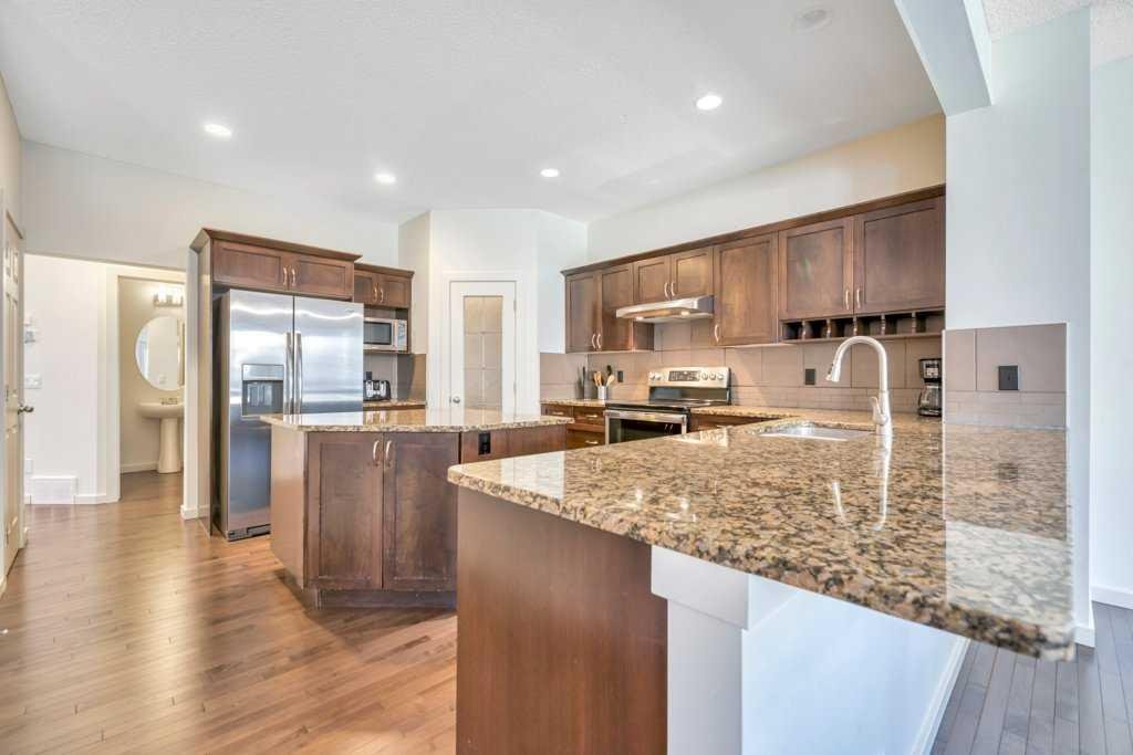 Beautifully updated 4 bedroom & 4 bathroom custom home built by Stepper and located in the desirable community of Springbank Hill, which offers lots of green space with great pathways & playgrounds, amazing schools and easy access to shopping, transit & all major routes. The main floor is warm & bright with lots of natural light and features an open to above formal living & dining room area with floor to ceiling 20ft high windows that gives you a majestic feeling as soon as you enter this home! On the other side is the cozy family room with a gas fireplace, a huge kitchen with lots storage & counter space, a spacious breakfast nook with patio doors leading out to your west facing backyard, and all of this in an open floor plan with rich walnut hardwood & cabinets. Upstairs you will find the master bedroom with a 5pc ensuite & big walk-in closet, a second master bedroom with 3pc ensuite, two more spacious bedrooms sharing a 4pc Jack & Jill bathroom, and a loft/bonus room ideal for a home office or recreation/games area. The laundry room is conveniently located on the main level adjacent to the 2pc bathroom. The unfinished basement awaits your imagination & ideas to turn into whatever your heart desires! This fabulous home is located just minutes from the Westside Rec Centre, 69st Train Station, Public Library, Superstore and Aspen Landing & Signal Hill Shopping Centers with all their amenities, restaurants & shopping!