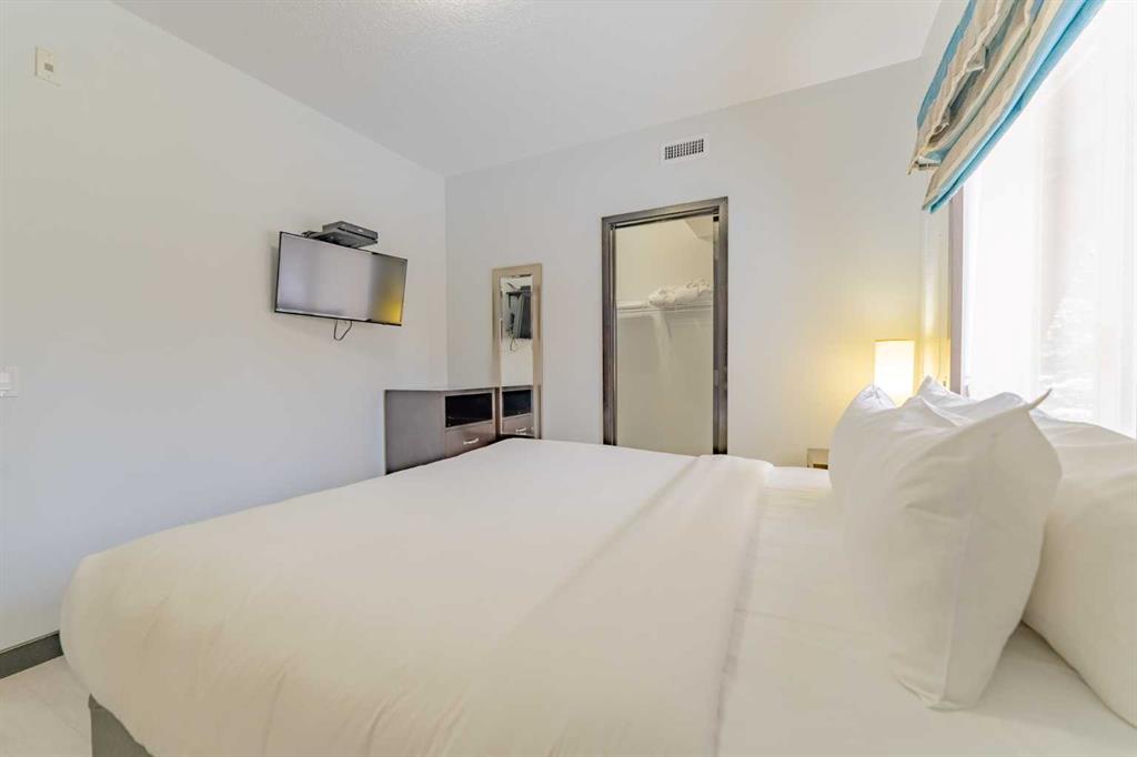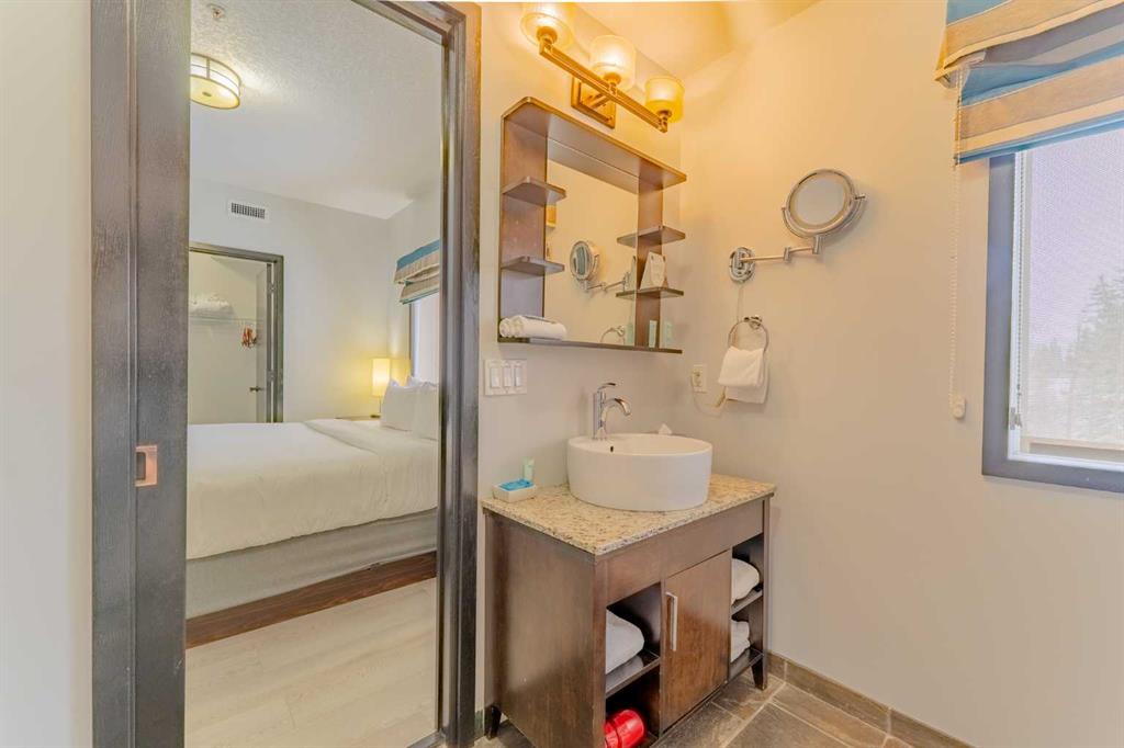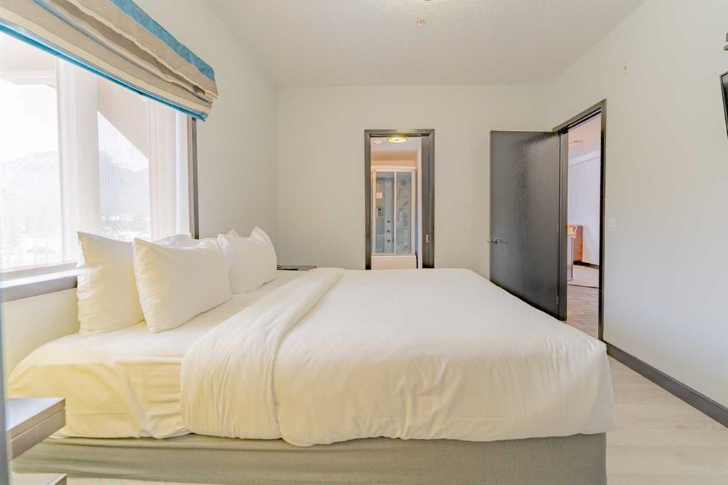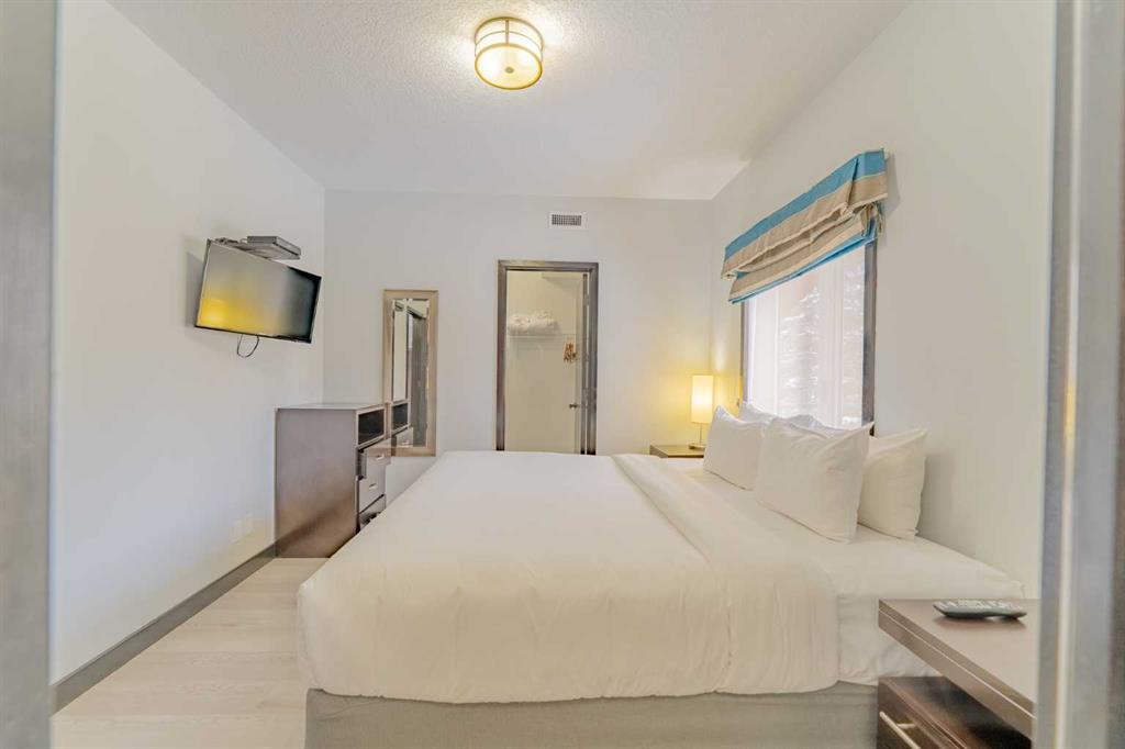 This corner unit at Grande Rockies puts you right in the middle of Canmore’s short-term rental market in an amenities-rich building and an ideal, walkable location. With 908 square feet, two bedrooms and two full bathrooms, it’s a perfect setup for guests and owners alike. The unit is fully turnkey, with a stocked kitchen, an open living space, a gas fireplace, and a private deck facing south and east. That corner exposure makes a noticeable difference. You get more natural light throughout the day and wide views toward the Three Sisters and surrounding ranges. The layout is practical and easy to maintain, which is key when you’re running a rental. This suite is currently part of the in-house rental program, but you have the option to switch to self-management or another provider depending on how hands-on you’d like to be. Grande Rockies has some of the best amenities in town, which helps keep it competitive year-round. Guests and owners have access to a large indoor pool with a waterslide, an indoor/outdoor hot tub, a spacious fitness centre, and an on-site restaurant. The common areas are well-kept and designed with short-term stays in mind. Location is another strong point. You’re a short walk to downtown shops, restaurants, and trails, and about 20 minutes from Banff. One titled underground parking stall is included. GST is included in the list price. Buyers should consult their accountant regarding eligibility for GST deferral. If you’ve been looking for a simple and smart way to enter Canmore’s short-term rental market, this is an excellent option with great positioning.