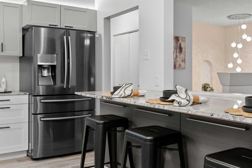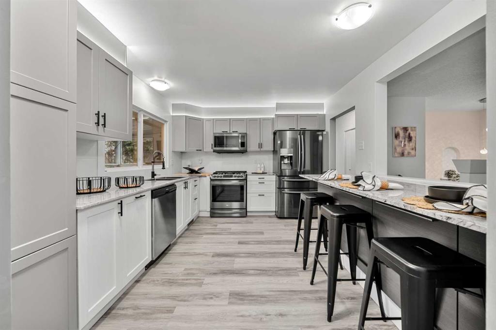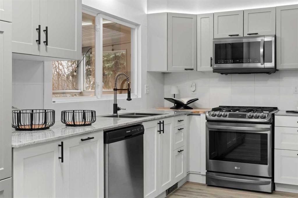 This beautifully renovated Brentwood home offers over 2,000 sq. ft. of thoughtfully refreshed living space on a quiet, private lot designed for easy, low-maintenance living. The charming, no-mow front yard sets a warm first impression, reflecting a home that blends comfort, style, and convenience. Inside, the main floor has been freshly repainted and features newly refreshed hardwood floors and a knockdown ceiling, giving the space a bright, modern feel. The airy, open-concept layout is centred around a welcoming living room with a wood-burning fireplace—one of two in the home ( a rare find!) , creating the perfect setting for cozy evenings. The updated kitchen combines functionality and contemporary design with sleek cabinetry, granite countertops, a generous breakfast bar, stainless steel appliances, and excellent storage, all flowing seamlessly into the adjoining dining area. From here, step out to the screened-in deck—an inviting all-season retreat ideal for morning coffee, quiet evenings, or entertaining around a fire table with a wall-mounted TV. Two well-sized bedrooms are located on the main level, offering flexibility for a serene primary suite, guest room, office, or creative space, along with a stylishly renovated 4-piece bathroom featuring floor to ceiling tile throughout. The fully developed lower level extends the living space with a large, relaxed family room featuring the second wood-burning fireplace, two additional bedrooms that can easily function as hobby rooms, a home gym, or guest accommodations, a renovated spa-inspired 3-piece bathroom, and a spacious laundry area. A separate rear entrance adds privacy for visitors and opens the door to future rental potential (subject to municipal approval). Outdoor living is just as enjoyable, with a covered patio, a private south-facing yard with fire pit, room for container gardening, -perfect for year-round enjoyment. Parking is generous with a double detached garage plus front driveway space for three or more additional vehicles. Triple-pane windows provide enhanced comfort, efficiency, and a peaceful indoor environment. Located in the heart of Brentwood, you’re just minutes from parks, schools, recreation facilities, cafés, shopping, transit, and the University of Calgary. With modern upgrades, refreshed finishes, and adaptable living spaces, this home delivers a comfortable, convenient, and elevated everyday lifestyle.