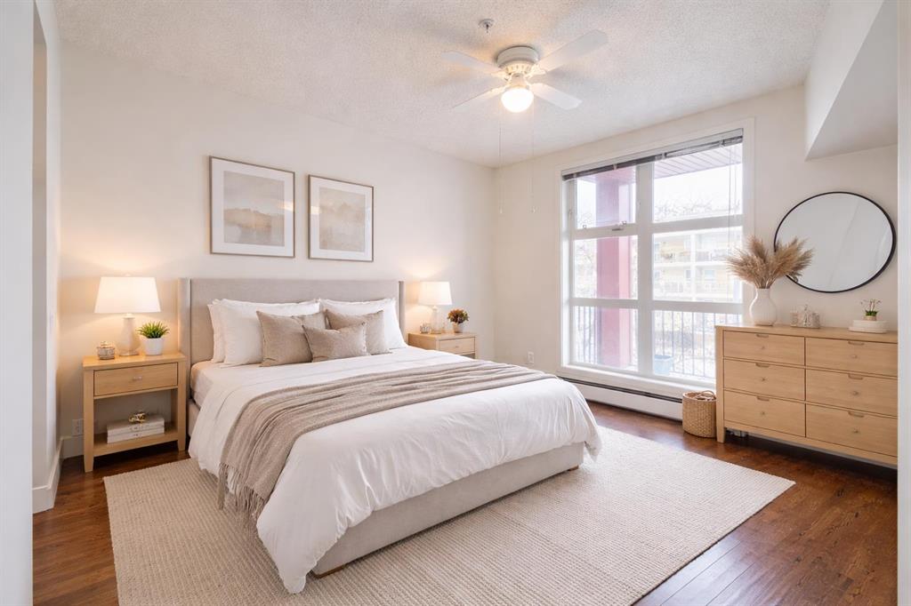 Experience the best of inner-city living in the heart of Mission, one of Calgary’s most vibrant and walkable communities. Just steps from the scenic Elbow River pathways and surrounded by cafés, restaurants, boutiques, and everyday amenities, this incredible location offers the perfect balance of urban energy and natural beauty.Inside, this thoughtfully designed home combines comfort and functionality. The open-concept layout creates an inviting flow between the kitchen, eating nook, and living room—ideal for both everyday living and entertaining. The kitchen features stainless steel appliances, ample cabinetry, and a raised breakfast bar that’s perfect for casual dining or gathering with friends. The adjoining eating nook seamlessly connects the space, allowing for effortless conversation while hosting. The living room is warm and welcoming, anchored by a cozy fireplace with a tile surround. Large windows invite in natural light, and direct access to the back deck extends your living space outdoors—ideal for enjoying a quiet morning coffee or relaxing in the evening.The spacious primary bedroom offers comfort and privacy, complete with convenient access to a well-appointed 3-piece bathroom featuring a stand-alone shower. Whether starting your day or winding down, this space feels both practical and refined. A versatile den sits just off the front entrance, making it the perfect work-from-home office, creative studio, or play space. Additional highlights include in-unit laundry for everyday convenience, a titled parking stall, and a dedicated storage unit, providing the extra space you need for seasonal items and gear. With its unbeatable Mission location near the river pathways and every amenity imaginable, paired with a functional and stylish interior, this home offers an exceptional opportunity to enjoy connected, carefree urban living.