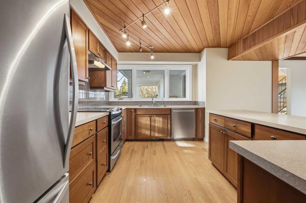 Backing directly onto Hole #7 at Willow Park Golf & Country Club, this is a truly rare offering in Calgary—a wide, extra private lot on one of Calgary’s most sought after inner city private golf courses, where your “backyard” is a ribbon of manicured fairway and mature trees instead of neighbours. It’s the kind of setting that changes how you live day-to-day: quieter mornings, more privacy, and views that feel expansive in every season. Just as special is the way the home arrives. Behind the gate, the enclosed front courtyard feels like a hidden garden, beautifully landscaped, sheltered, and perfect for morning coffee, evening wine, or welcoming friends with a sense of privacy you don’t often find in the city. Held in the same family for 40+ years, the home was ahead of its time—an open-concept feel long before it became the standard, paired with architectural details that give it real warmth and personality: open-riser stairs, exposed wood beams, and a cedar-lined kitchen ceiling that anchors the main floor with timeless character. The main level is designed for both elegant entertaining and comfortable everyday living, with distinct spaces that still connect naturally. The formal living room—with a wood-burning fireplace—looks onto the courtyard, offering a serene, light-filled place to unwind. The formal dining room frames the golf course view, creating a natural “wow” moment for dinners and gatherings. On the other side, a generous family room with oversized sliding doors creates that effortless indoor/outdoor connection and flows seamlessly into the breakfast nook and kitchen—functional, inviting, and made for real life. Upstairs, you’ll find four bedrooms, including a true primary retreat with its own wood-burning fireplace, a renovated 4-piece ensuite, and a flexible nook that’s ideal for a reading space, office, or den—all overlooking the course, so the view is part of your everyday routine. The three additional bedrooms are all genuinely well-sized, offering room to grow, host, or work from home without compromise. The fully finished basement expands your options with a large recreation room, a second gas fireplace, and a 3-piece bathroom featuring a steam shower—a standout comfort feature you’ll appreciate year-round. A large laundry room completes the lower level with ample storage, a mini bar fridge, and washer/dryer, keeping the practical side of life organized and out of sight. And then there’s the walkability—one of the most underrated lifestyle perks of this location. From here, you can comfortably stroll to Willow Park Village for local boutiques, services, and dining, and you’re also within walking distance of Southcentre Mall—one of Calgary’s major shopping destinations with 160+ stores and services. This is more than a home—it’s a legacy property on a private course in the heart of Willow Park, where the lot, the setting, and the lifestyle combine into something you simply can’t recreate.