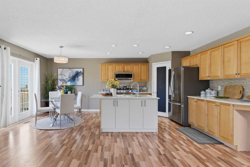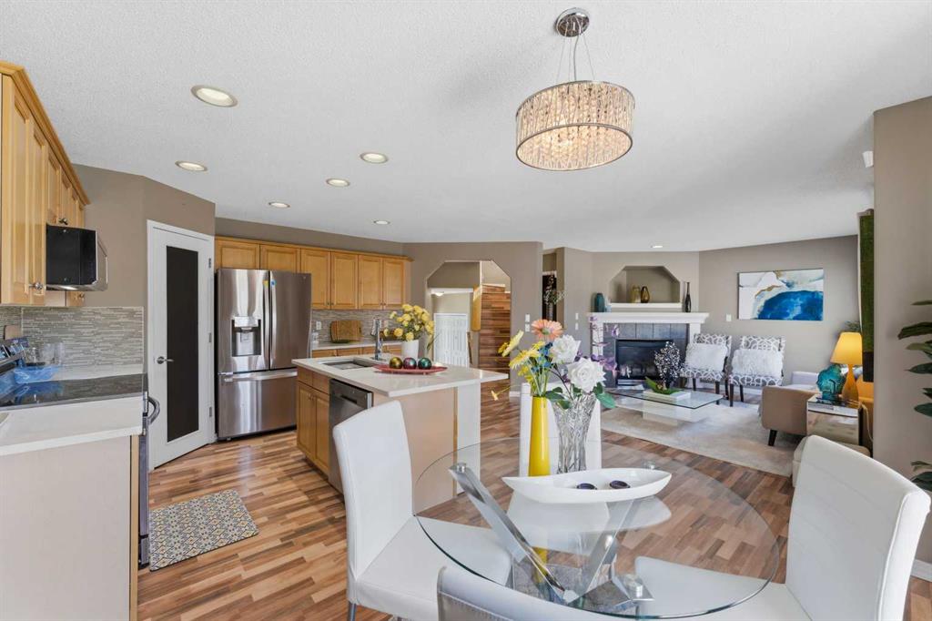 PRIME LOCATION IN CITADEL – STEPS FROM SCHOOLS & PARKS! This impeccably maintained 2-storey home offers the perfect family layout with upgraded laminate flooring and an open-concept main floor. Stay cool all summer with Central Air Conditioning and cozy up in winter with a gas fireplace and a fully insulated/heated 2-car garage. The upper level features a vaulted bonus room, primary suite with 5-piece ensuite, and convenient upper-floor laundry. The fully finished basement adds a 4th bedroom and large rec room. Enjoy the massive West-facing backyard, complete with a large deck, lower patio, new storage shed, and a private playground with swings and a slide. Close to Stoney Trail and major shopping—this home shows 10/10!