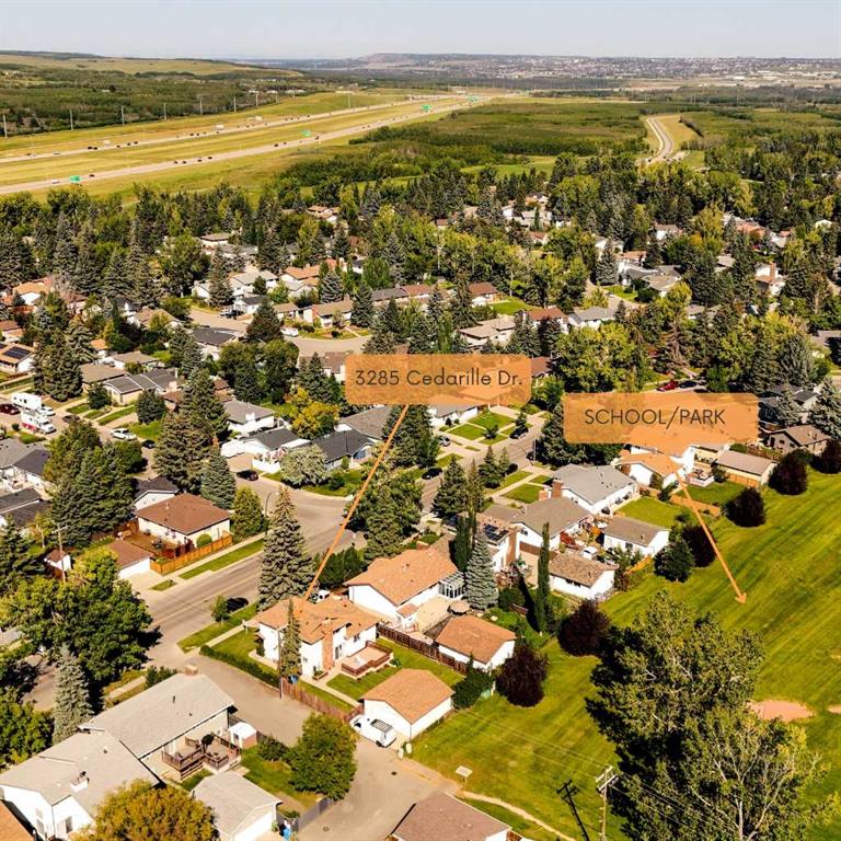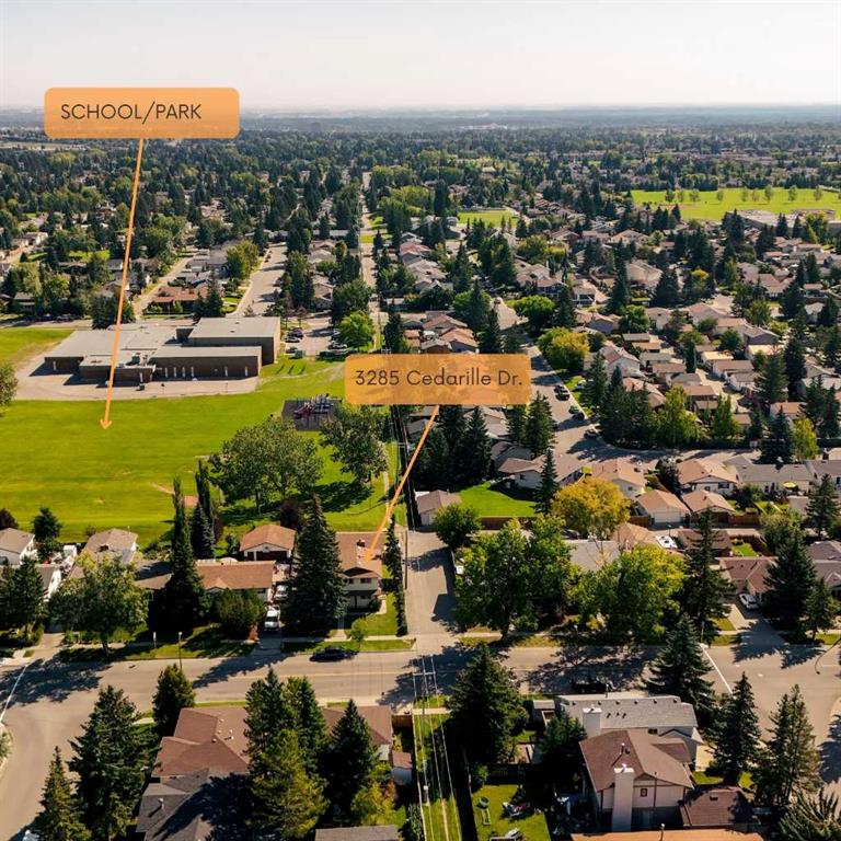 BACKING ONTO SCHOOL/PARK | CORNER LOT | NEW FLOORING ON MAIN | OVERSIZED GARAGE | UPDATES THROUGHOUT | Welcome to 3285 Cedarille Drive SW, located in a AAA location within the family-oriented community of Cedarbrae. Backing directly onto Cedarbrae School, this is an ideal location for families looking for simplicity with school access and views of the playground right from your own backyard. The main level features new LVP flooring throughout and offers a more traditional layout in a rare 2-storey home for Cedarbrae. The main level includes a large living room with west-facing windows, ample dining space for a larger family, and a well-appointed kitchen featuring stainless steel appliances, quartz counters, custom tile backsplash, and the sought-after kitchen sink with a view overlooking the massive backyard. Off the kitchen is a lovely family room centred around a wood-burning fireplace, the perfect place to cozy up on those winter nights. To complete the main level you have a convenient laundry room, a 2-pc powder room, and a 4th bedroom, making it an ideal guest space or home office. There is direct access from the family room to the backyard featuring a massive deck and plenty of room for kids and pets to run around in almost complete privacy. Back here you’ll also find access to the oversized double detached garage, perfect for anyone looking to have a home workshop or needing space for larger vehicles. The upper level of the home features 3 bedrooms, including the primary with ample closet space and a 4-pc ensuite. Additionally, you will find 2 more bedrooms and a second full 4-pc bathroom. The unfinished basement is an ideal place to put your finishing touches on, with plenty of windows and space for future development. Location is everything and this home checks all the boxes — bus stop close by, backing onto a park, tons of additional parking at the side, close to Fish Creek Park and Glenmore Reservoir, off-leash areas, commercial shops just a few blocks away, along with the Cedarbrae Rink and Community Centre which features a hockey rink, pickleball and tennis courts, and markets in the summertime. Don’t wait to see this one, please book your private showing today!