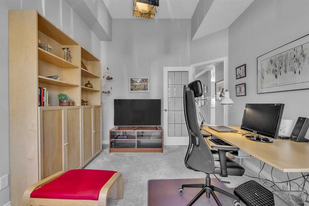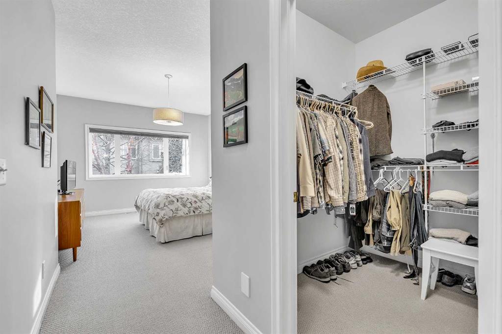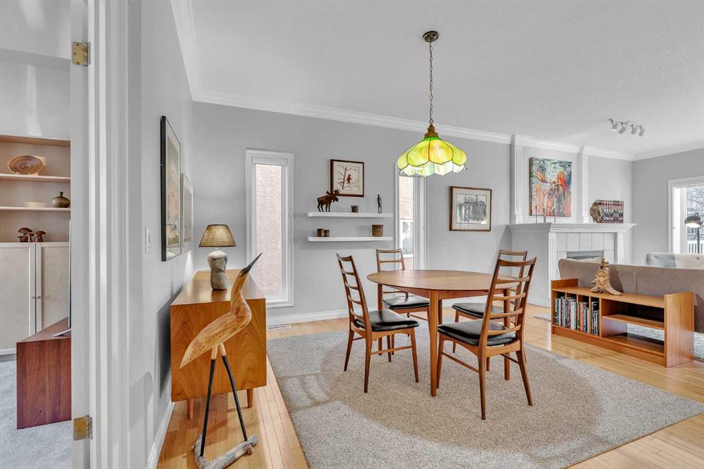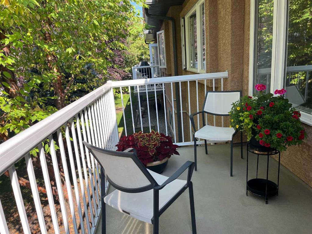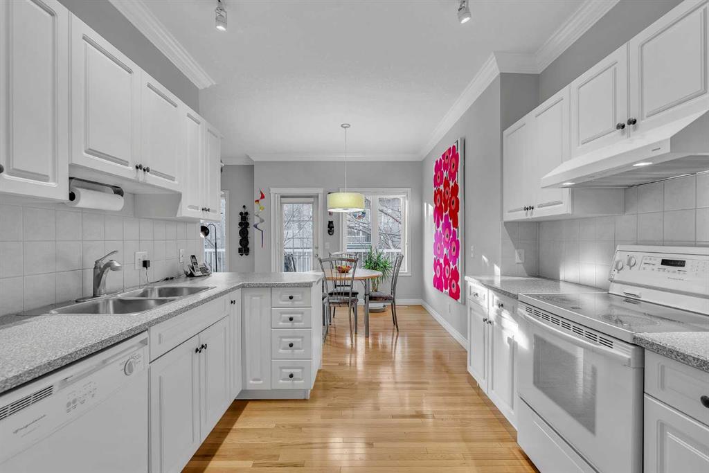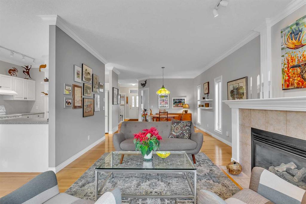 Natural light and timeless design, as well as one of the biggest floorplans in this complex, give this beautiful Shawnessy villa style and comfort in this sought-after adult (35+) estate area. Attractive landscaping frames the front porch, and inside, transom windows flood a spacious entryway with sunshine from the east. A front room makes a great home office, and features statement floor-to-ceiling windows that bring in the morning light for a perfectly illuminated workspace. The main living space begins with a sunny and open dining area. Clean lines and gorgeous hardwood balance warmth and elegance as you continue into the open living room. A gas fireplace is the focal point, inviting guests to cozy up for great conversation. In the kitchen, a monochrome palette creates an understated yet sleek aesthetic complete with white appliances. A full pantry is a desirable element, and counterspace is plentiful; sure to impress the chef of the household. A breakfast nook steps out to the balcony, with dappled shade from the treed courtyard – an ideal setting for winding down as you take in the sunset skies to the west. This level holds the primary bedroom, which is a peaceful private retreat. This secluded space includes a huge walk-in closet and an ensuite with a soaker tub and separate stand-up shower. A functional layout has the powder room and laundry just next to the entry from the double attached garage to finish this level. Downstairs, the finished basement provides tons of additional living space, with a large family room, another bedroom with a walk-in closet, and another full bathroom. The utility room also offers a massive storage area for all your seasonal items. This home has a central vac and air conditioning, as well as a new hot water tank. The complex itself is well laid out, with privacy and quiet as priorities. This home is very near the recycling and waste sheds and visitor parking, perks you and your guests will appreciate. This neighbourhood is popular for its green space, with pathways beginning only steps from your door and winding all the way to Fish Creek Park. Convenience is also a benefit; the Shawnessy shopping area is just minutes down the road, offering a plethora of stores, services, and amenities. The C-train is also nearby, giving commuters the option to hop on the LRT, or drive downtown via convenient access to Macleod Trail. Proximity to major routes like Stoney Trail put any area of the city in easy driving distance, and this community is also near Highway 22X, where you will find iconic Spruce Meadows, as well as an easy escape west into the mountains for your favourite outdoor activities like camping, hiking, mountain biking, and skiing. With 2195 sqft of developed space, this floorplan is a rare find, call today.