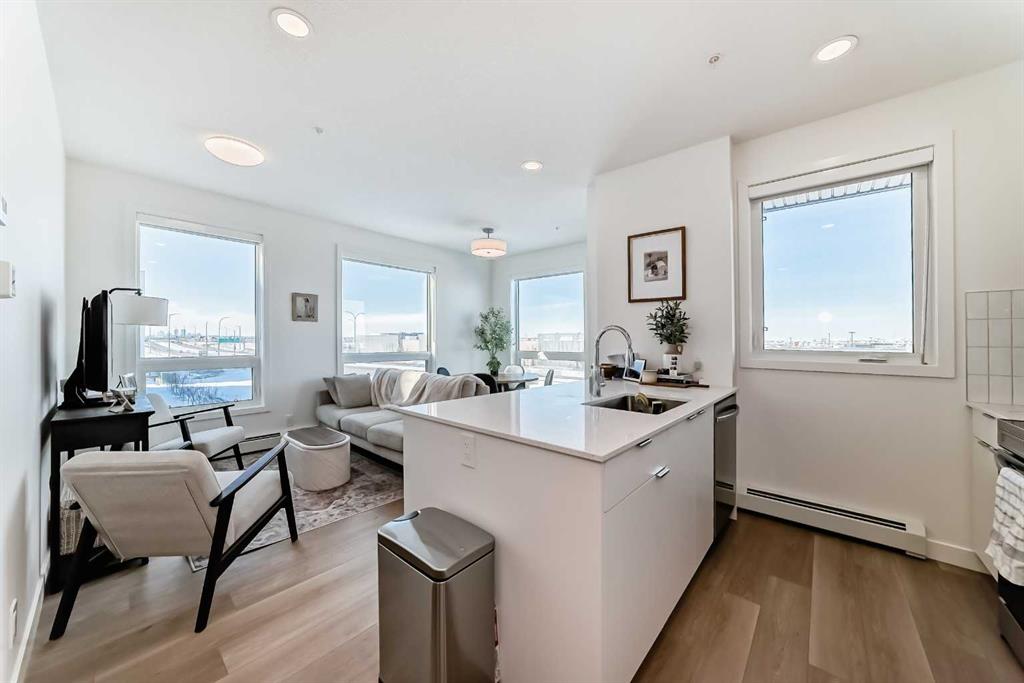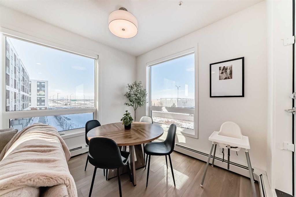 Welcome to this beautifully maintained 2-bedroom, 2-bathroom corner unit located just steps from East Hills Shopping Centre in the vibrant community of Belvedere. Enjoy unbeatable convenience with major retailers like Costco, Walmart, and Sport Chek right at your doorstep. This bright and spacious unit offers exceptional privacy with only one shared wall, making it feel more like a townhouse than a condo. Large windows fill the home with natural light and showcase stunning sunset views you can enjoy every evening. The thoughtfully designed layout features two generous bedrooms, including a primary suite with its own ensuite bathroom. Additional highlights include underground heated parking—perfect for Calgary winters—and access to a large, well-equipped fitness center within the building. Whether you’re a first-time buyer, downsizer, or investor, this home combines comfort, location, and lifestyle in one fantastic package.