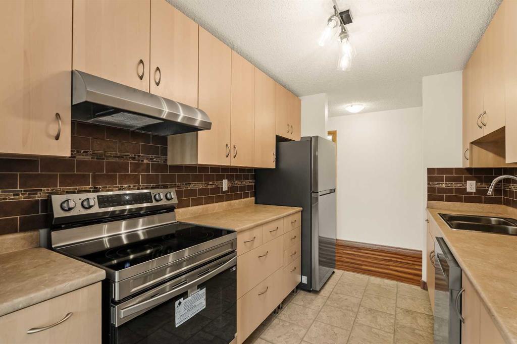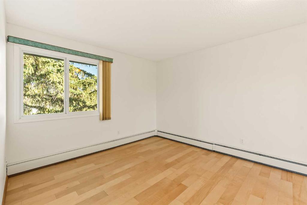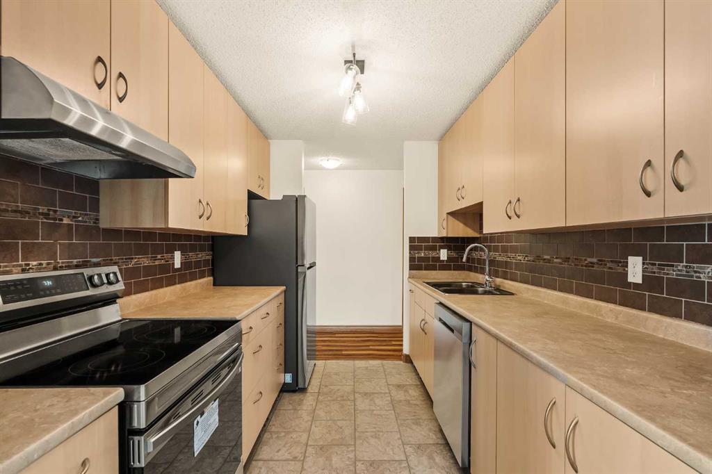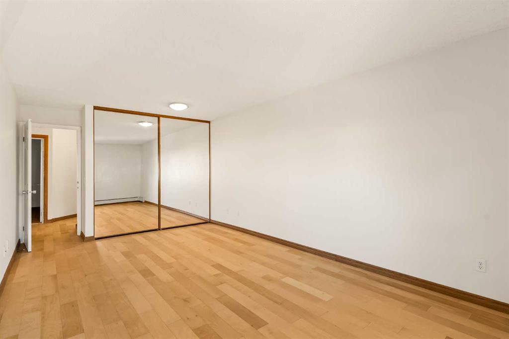 Proudly presenting suite 3302, the best two bedroom in the building with brand new appliances and hardwood flooring. This well maintained top floor two bedroom corner condo in Glamorgan is bright, quiet, private and has been meticulously cared for over the years. It is truly turnkey, offering both comfort and convenience. Inside you will find 5 brand new appliances (refrigerator, dishwasher, oven, washer dryer), engineered hardwood flooring (installed Oct 2025), an operational wood burning fireplace (inspected annually by the condo board), an upgraded slider window, updated light fixtures, soft close kitchen drawers, and a dual vanity sink. The floor plan is spacious and well laid out, with abundant natural light streaming through the suite throughout the day. The primary bedroom is incredibly spacious, and the home features an oversized in-suite storage room as well as an additional large storage locker off of the private deck. The building is well maintained with an active and engaged board, giving peace of mind to owners. The location is highly walkable close to a Co-op, Save On Foods, Canadian Tire and London Drugs. The beloved Glamorgan Bakery is a short walk, along with restaurants, cafés, schools, Mount Royal University and fitness amenities. With shopping, a transportation hub and daily essentials close by, this Glamorgan condo is an ideal place to call home. This property has been professionally cleaned and is ready for quick possession!