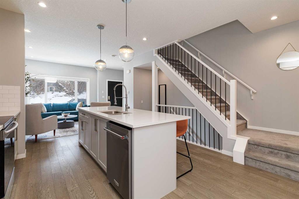 OPEN HOUSE – Saturday, Feb 28. 1:00-4:00 Ideally situated on a serene, tree-lined street in the sought-after community of Highland Park, this exquisitely designed townhouse awaits. Upon entering, you are welcomed by an expansive, sun-drenched floor plan characterized by massive West facing windows that bathe the interior in a warm, natural glow, highlighting the sophisticated modern finishes and wide-plank flooring throughout. The inviting front living room serves as a perfect sanctuary for relaxation, anchored by a sleek focal fireplace with a floor-to-ceiling stone surround. Flowing effortlessly from the living area is the central kitchen featuring an oversized quartz island, stainless steel appliances, and high end cabinetry. This culinary hub transitions gracefully into a dedicated dining area, making the main level an ideal setting for both intimate family evenings and grander entertaining. A two piece washroom completes this floor. The upper level is thoughtfully designed, and houses three bedrooms including a generously sized primary retreat with a walk-in closet and a four-piece ensuite. Down the hall, are the other two bedrooms, and an additional full bathroom. For added convenience, the laundry facilities are located on this upper floor. Extending the living space further, the professionally finished basement features a large recreation room, a stylish bar, a fourth spacious bedroom with walk-in closet, and a third full bathroom, making it perfect for guests or a family member wanting their own separate living space. Beyond the interior, the property includes a small, fenced backyard space, as well as a single detached garage for secure, convenient parking. This is a great opportunity to live in an amenity rich, vibrant neighbourhood, just minutes away from the recreational opportunities at Confederation and Nose Hill Park. Call today to book your showing.