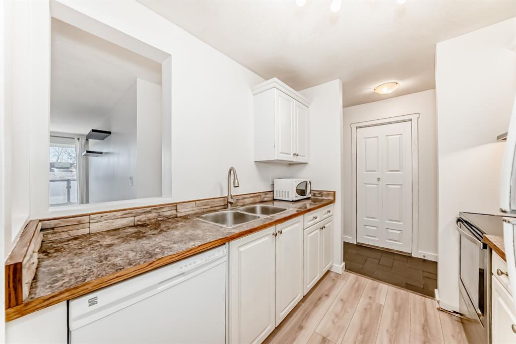 Beautiful Patterson condo, ideally situated in a great location, close & direct access to the downtown core, new LRT! The light & bright living area showcases dark laminate flooring, centers on a cozy corner fireplace, and opens out to a private covered balcony, the kitchen has been updated and features plenty of cabinetry & counter space, along with a tile backsplash and unique pass-through; the dining area offers great storage solutions. The master bedroom boasts a large walk-in closet, while a the second bedroom is of a good size and an updated four-piece bath is great for guests! This unit also offers in-suite laundry & ample storage – a must! Ideal for owner-occupant and investor alike, don’t miss out on this one. All windows and patio doors in the complex have been changed. Call today!