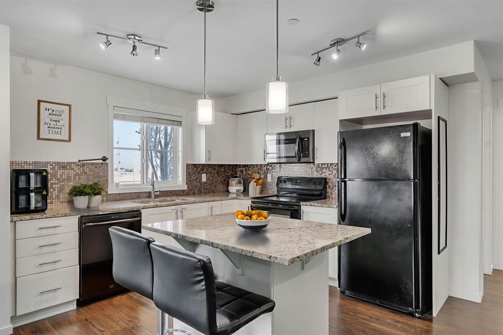 OPEN HOUSE-SAT & SUN (JAN 10-11) 2PM-4PM***This doesn’t feel like your typical condo, it feels like a SPACIOUS HOME – Watch Video Tour! Picture this: you walk into a RARE 3RD FLOOR CORNER UNIT, suddenly noticing you actually have room to breathe in a MASSIVE 900+ SQ FT LAYOUT, then step onto your EAST-FACING BALCONY and think, “Wait… where are the other buildings?”because all you see are COMPLETELY UNOBSTRUCTED HORIZON VIEWS and open sky, the kind that makes mornings calm and evenings exciting enough that you might even catch a GLIMPSE OF THE AURORA BOREALIS if the night is feeling generous. This WELL-MAINTAINED CORNER UNIT clearly shows PRIDE OF OWNERSHIP, wrapped in a CLASSIC BRICK EXTERIOR that feels welcoming before you even step inside. Once you do, the BRIGHT & OPEN FLOOR PLAN pulls you in with LARGE WINDOWS, BEAUTIFUL VINYL PLANK FLOORING, and NEWER BEDROOM CARPETS, starting with a smart entry hallway that keeps your living space private and gives you room for bags, shoes, and real life plus a stylish feature wall that quietly says, “Yes, this place is special.” The kitchen quickly becomes the star of the show with GRANITE COUNTERTOPS, a CENTRE ISLAND WITH PENDANT LIGHTING perfect for breakfasts, coffee, or midnight snacks, and a SINK WITH A VIEW that somehow makes dishes feel less like a chore. The MASSIVE LIVING ROOM opens directly to the balcony, features a stunning accent wall, and feels so cozy it might ruin hotel stays forever, while a DEDICATED DINING SPACE sits conveniently beside the kitchen for dinners you’ll swear you’ll host more often. The PRIMARY BEDROOM offers peaceful views, DUAL WALK-THROUGH CLOSETS, and a PRIVATE ENSUITE FULL BATHROOM, while the SECOND BEDROOM WITH A VIEW sits near the 4-PIECE MAIN BATH. Add UPGRADED IN-SUITE LAUNDRY, CORNER TITLED HEATED UNDERGROUND PARKING, an ASSIGNED STORAGE UNIT, AMPLE VISITOR PARKING, and PET-FRIENDLY (BOARD APPROVAL) living in a special complex with a beautifully designed central courtyard, and life just gets easier. Step outside this specific building in COPPERFIELD PARK II and you’re surrounded by PARKS, PLAYGROUNDS, PONDS, WALKING PATHS, AND SPORTS COURTS, while being just minutes from 130TH AVENUE, SOUTH HEALTH CAMPUS, shopping, dining, schools, and effortless access to STONEY TRAIL & DEERFOOT TRAIL and with a PROFESSIONALLY MANAGED COMPLEX offering solar assistance and beautifully maintained grounds, this home delivers quiet residential living, unbeatable value, and the kind of comfort that makes you wonder why you didn’t move sooner, because once you see it, you won’t be asking if it’s the one, you’ll be asking how fast you can make it yours.