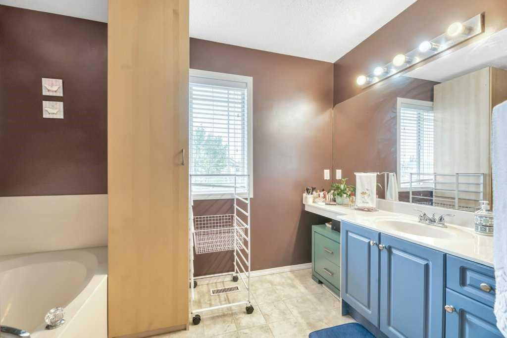 Primary bedroom features a four-piece ensuite with a large vanity, relaxing soaker tub, and walk-in closet
