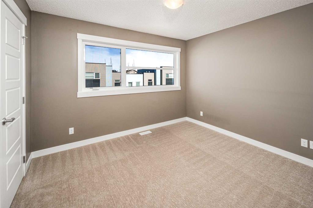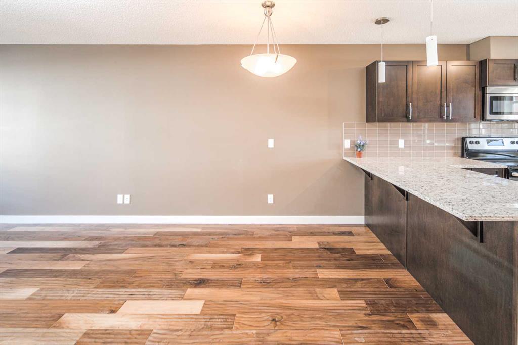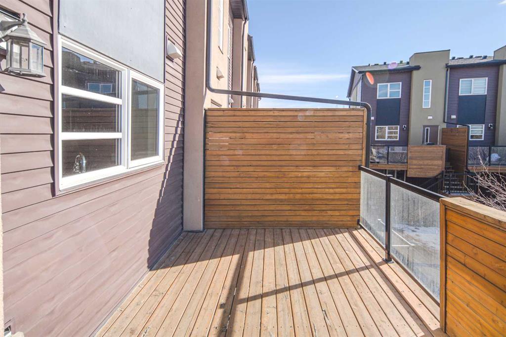 Welcome to this end unit townhome backing onto a lush courtyard—one of the desirable units in Coventry Station. This well-designed home features 2 bedrooms, 2 bathrooms, a versatile flex room, a private outdoor entrance, and an attached single garage, offering the perfect blend of space, functionality, and privacy. The open-concept main level is ideal for everyday living and entertaining, showcasing hardwood flooring and large windows that fill the space with natural light. The stylish kitchen is equipped with granite countertops, dark espresso cabinetry, and stainless steel appliances, and flows seamlessly into the living and dining areas. Step out onto the spacious elevated deck overlooking the courtyard, an ideal spot for relaxing, entertaining, or enjoying your morning coffee. Upstairs, the primary suite offers beautiful courtyard views, a walk-in closet, and a 3-piece ensuite with a walk-in shower. The second bedroom is generously sized and conveniently located next to a full 4-piece bathroom and an upper-level laundry area. The ground-level flex room provides excellent versatility and is perfect for a home office, gym, or creative space. It also features its own private outdoor entrance for added convenience. From the upper deck, stairs lead to a lower patio area, expanding your outdoor living options. Located in the heart of family-friendly Coventry Hills, this home is just minutes from schools, parks, shopping, and the renowned Vivo Recreation Centre. With quick access to Stoney Trail and Deerfoot Trail, commuting across the city is easy and convenient. Don’t miss this opportunity—book your private showing today!