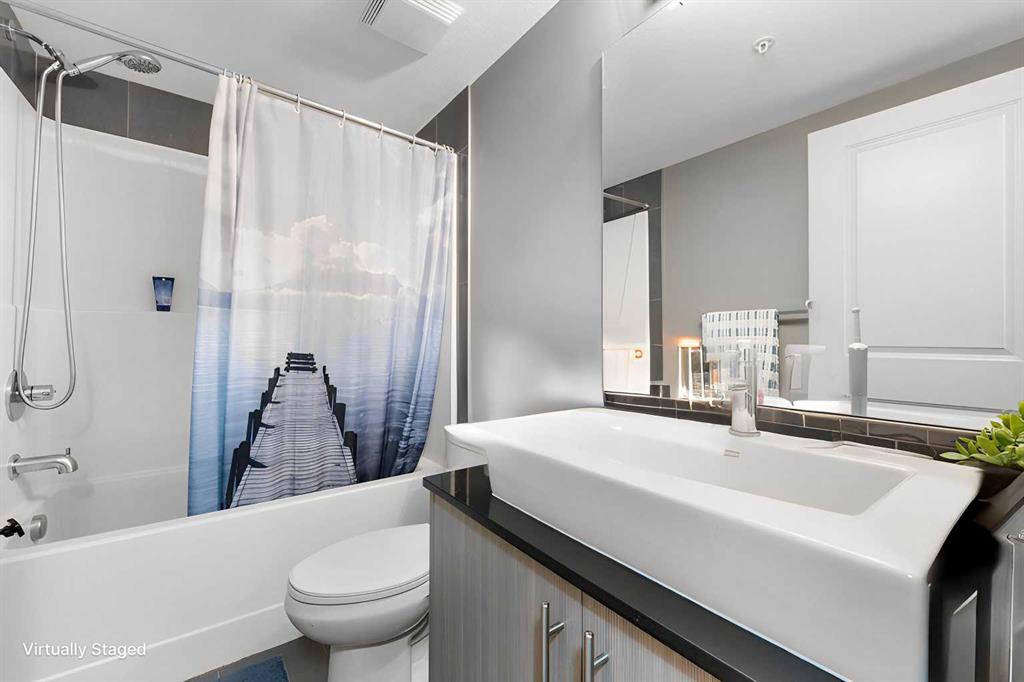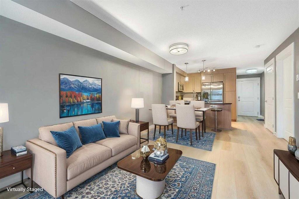 Welcome to your next home in Mahogany—one of Calgary’s most sought-after lake communities, where convenience, comfort, and year-round recreation come together. Located in the well-designed 51 Oak complex, this third-floor condo offers a wonderful blend of modern style and effortless living. Almost new and built around a beautifully landscaped central courtyard, the development features three thoughtfully arranged buildings that create a quiet, welcoming atmosphere from the moment you arrive. Inside, 2 bed home is bright, spacious, and impressively functional. Fresh new flooring installed in 2024 adds a clean, updated feel throughout. The open kitchen is designed for everyday ease—complete with sparkling stainless steel appliances (including a fridge with water and ice), granite countertops, a deep double sink with a bistro-style faucet, tall cabinetry, and a stylish subway tile backsplash. A convenient breakfast bar connects the kitchen to the main living area, creating an inviting space for both relaxing and entertaining. Large windows fill the home with natural light and offer a lovely view of the quiet courtyard below. The bathroom features a modern vessel sink and a deep soaker tub—ideal for unwinding at the end of the day. You’ll also enjoy the practicality of an in-suite stackable front-load washer and dryer. Step outside onto the spacious balcony, perfectly sized for enjoying a morning coffee, an evening beverage, or a bit of fresh air any time of day. Parking and storage are easy with your titled underground stall and attached storage locker—keeping your gear, tools, and seasonal items secure and out of the way. Living in Mahogany means having access to an incredible list of amenities: lake access for swimming, skating and fishing, beautifully maintained beaches, tennis courts, scenic ponds, endless walking trails, and vibrant community events. Shops, restaurants, groceries, and services are just minutes away, making day-to-day life simple and enjoyable. If you’ve been searching for a well-maintained, move-in-ready condo in a community that offers more than just a place to live, this home at 51 Oak delivers the lifestyle you’ve been waiting for.