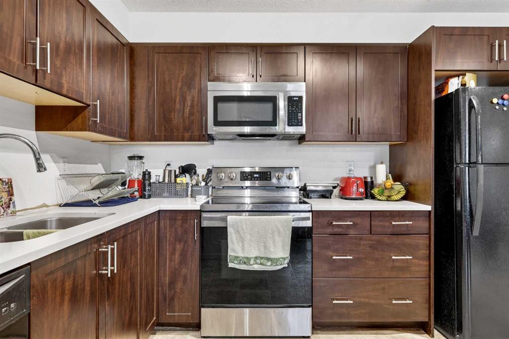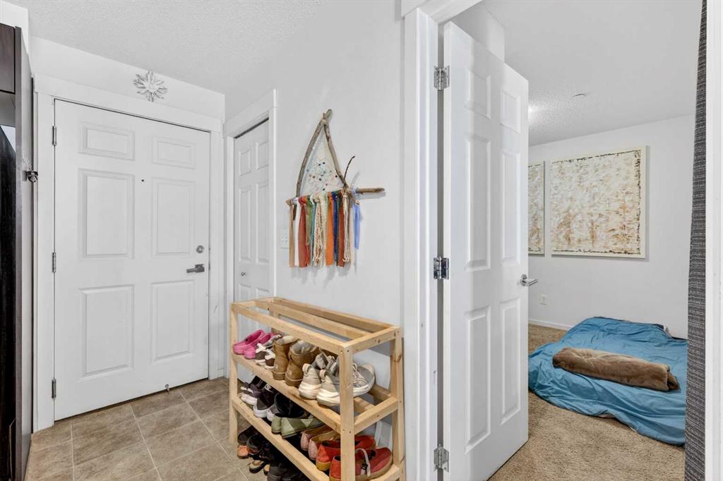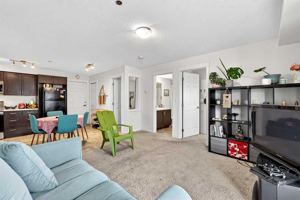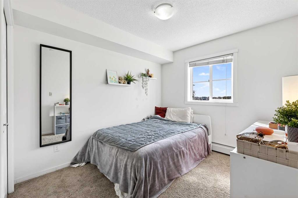 Welcome to this spacious and well-designed 2-bedroom, 2-bathroom with a large den apartment in the desirable community of Copperfield. As you enter, you’re greeted by a functional open-concept layout that seamlessly connects the kitchen and living area, complete with quartz countertops and plenty of prep space. Natural light pours in through the sliding doors, leading to a sunny south-facing balcony with a pleasant open view, perfect for relaxing or enjoying your morning coffee. One of the standout features of this unit is the versatile den, complete with its own door and closet. Whether you need a home office, guest room, or additional storage, this space offers flexibility that’s hard to find in apartment living. The thoughtfully planned layout enhances privacy, with the primary bedroom tucked away on one side of the unit, featuring its own private ensuite, while the second bedroom and full bathroom are positioned on the opposite side, ideal for roommates or guests. This unit also includes a titled underground parking stall for added convenience. Located close to major routes, shopping, and everyday amenities, this home offers the perfect blend of comfort, functionality, and location.