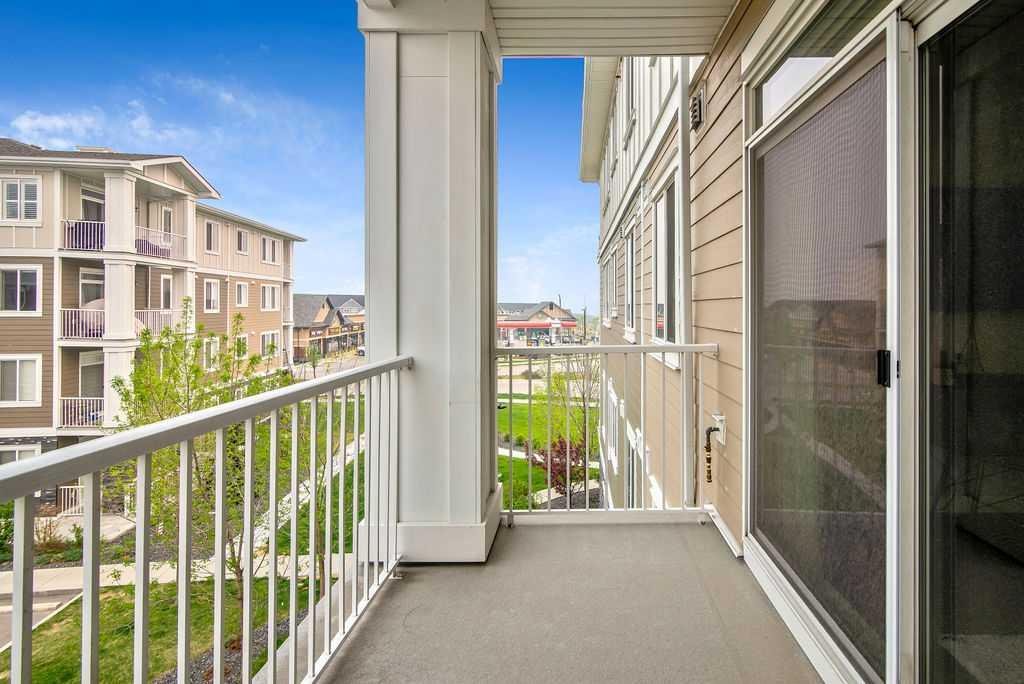 Light and airy, this lovely upper floor condo in beautiful Cranston showcases upscale finishes and a great location. Sunshine floods the main living area from the east through sliding glass doors and transom windows above. Vinyl plank flooring in a rustic wood aesthetic is a grounding base for the sleek palette of whites, greys, and black accents, giving the unit an effortless, high-end look. In the kitchen, plentiful cabinetry includes pantry cupboards, and quartz counters extend into an eating bar in a layout that connects the space so conversation flows without pause as you transition between cooking, dining, and relaxing. To one side, the primary bedroom is a self-contained retreat with a walk-through closet. A gorgeous ensuite offers dual sinks, a linen cupboard, and a glassed-in shower with a bench. The other wing of the flat holds the second bedroom and another full bathroom – a roommate scenario would work well here, as would a home office or nursery for a new family. In-suite laundry is a huge perk, and the covered balcony has BBQ hookups. This unit has underground titled parking as well. The Cranford Ridge complex is well-run, with attractive green spaces. The local shops at Cranston Corner are only steps away, as is access to the community pathway system, which extends into a large natural area. Parks and playgrounds are within walking distance, and there are several options for shopping and schools in a short drive. The Resident’s Association is close, and with your HOA membership you will have access to facilities and programs there, including the outdoor rink and racquet courts. Just across Deerfoot, Seton holds a plethora of shops, services, and restaurants, as well as the South Health Campus. This area is quickly becoming a new centre for the city, with a great range of amenities available nearby. Of course, if you like adventure, this community is well-located for you to be on the highway headed out of town. You could be first out into Kananaskis Country for camping, hiking, and alpine activities, or explore small town Alberta to find hidden gems, movie sets, and so much more. See this one today!
