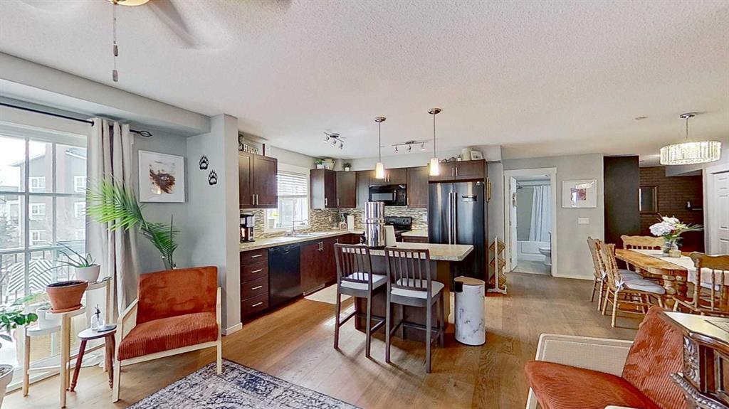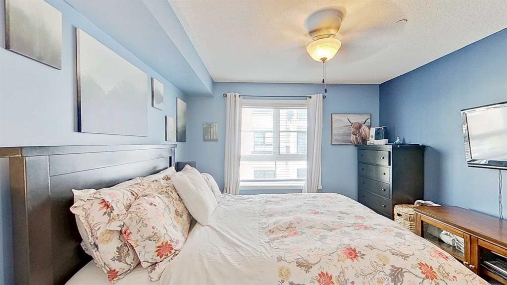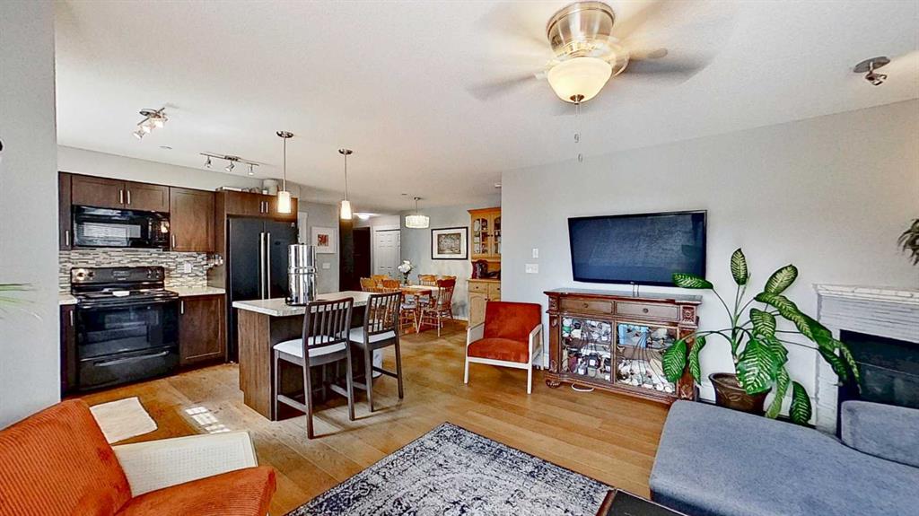 This spacious, open-concept two-bedroom condominium presents an exceptional opportunity. The home is equipped with a full-size, stacked washer and dryer conveniently located in the storage room adjacent to the generous entryway, which also features two large floor-to-ceiling cabinets for outerwear. The kitchen includes a brand-new refrigerator purchased in March 2026. A large, open-concept kitchen seamlessly integrates with the dining and living areas, creating an ideal environment for comfortable living and entertaining guests. In addition to two inviting bedrooms, the condo offers one three-piece bathroom and one four-piece bathroom. Patio doors from the living room lead to a covered deck measuring 11′ x 6′, perfect for relaxing on warm summer days, grilling dinner with the direct gas BBQ hookup, or simply enjoying the changing weather. Abundant natural light fills this corner unit, featuring ample windows—including an extra window unique to its location—for a bright and welcoming atmosphere. Additional amenities include a heated underground parking space and a dedicated storage locker.