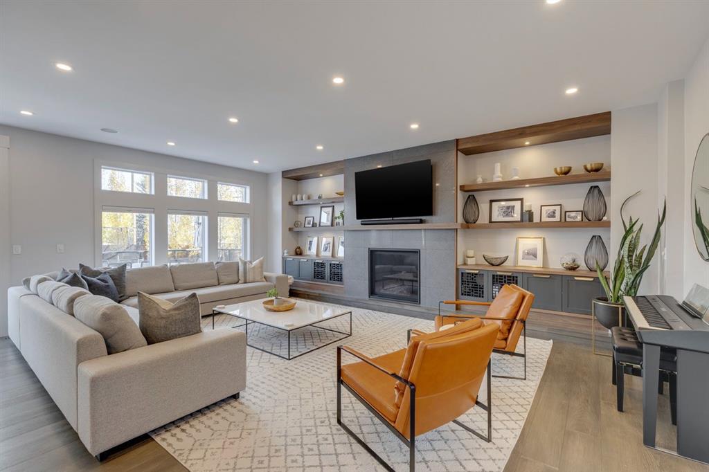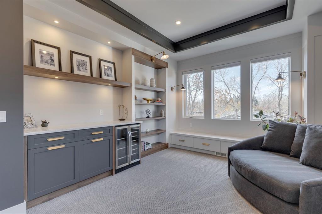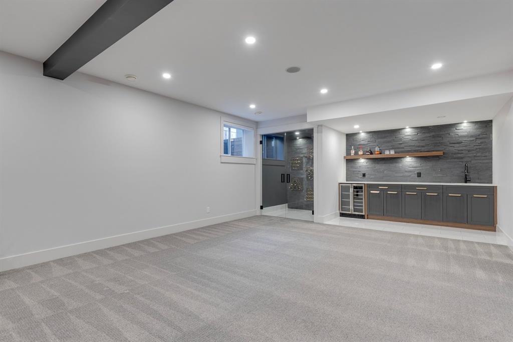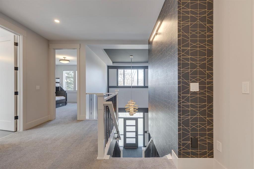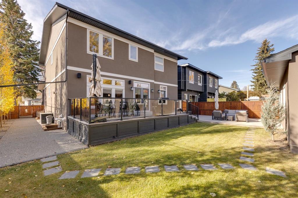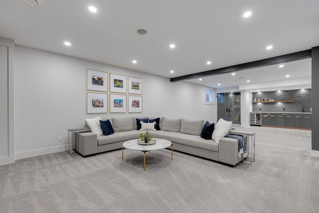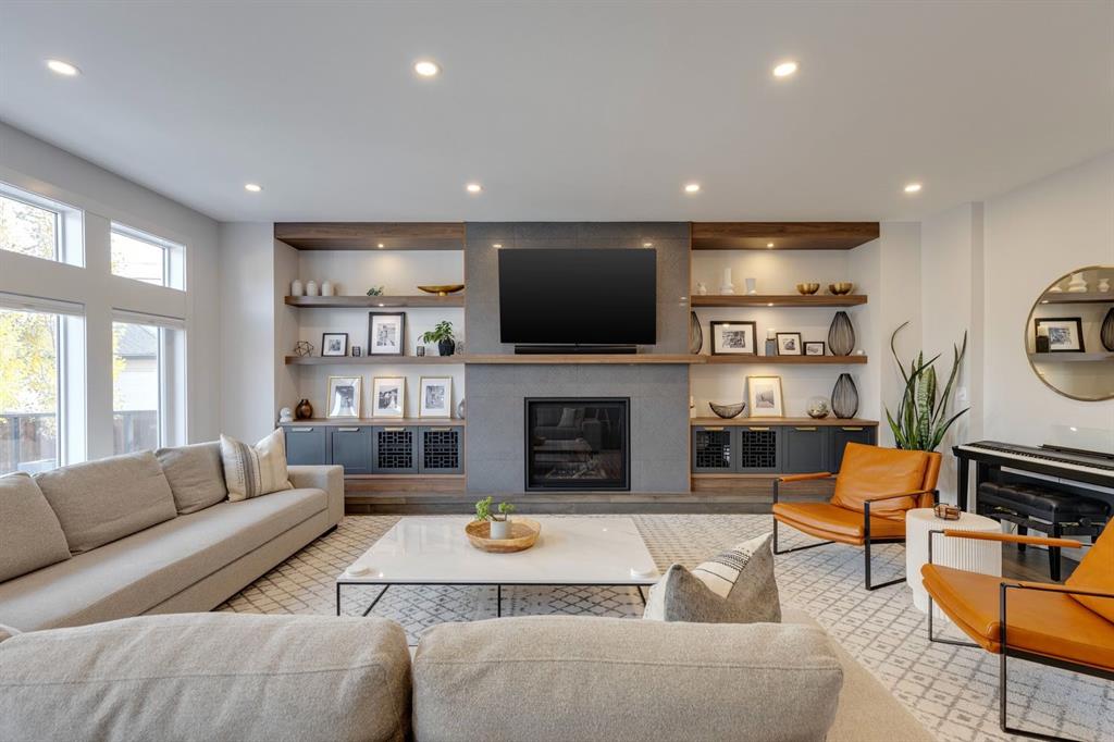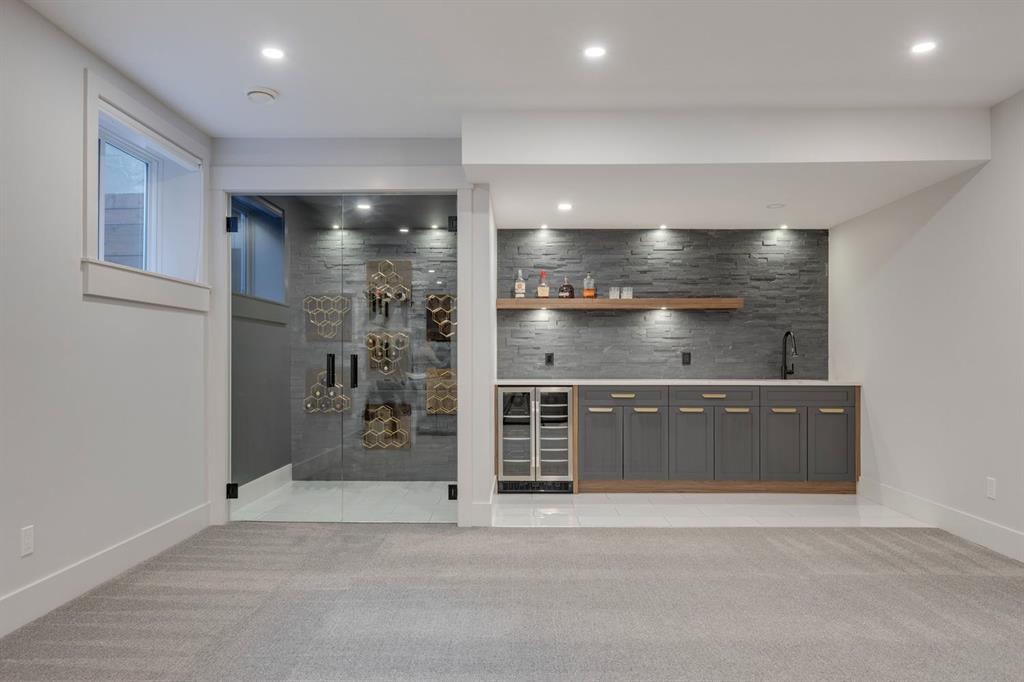 Discover modern elegance and refined living in this custom built architectural showpiece. Designed for families and entertainers alike, every element of this residence blends cutting edge technology, timeless craftsmanship, and a warm, luxurious ambiance that instantly feels like home. From the moment you arrive, you’ll be captivated by the exquisite curb appeal and inviting front porch where you can unwind with a glass of wine and wave to passing neighbours. Step inside to a warm, contemporary interior accented with rich walnut finishes throughout. A culinary enthusiasts dream kitchen is a true centrepiece, featuring an expansive eat-up island, a walk-in pantry, custom cabinetry, built-in appliances, and a massive island with a Zomodo prep sink that transforms seamlessly for entertaining. Designed to impress and inspire, this kitchen effortlessly blends functionality with sophistication, making it ideal for both intimate family meals and lavish entertaining. The open concept main floor invites connection, whether you’re hosting elegant dinner parties or cozy family nights by the fireplace. Extend your living outdoors to a spectacular, multi-tiered deck and beautifully landscaped rear yard, ideal for summer gatherings or peaceful evenings under the stars. Upstairs, the primary suite redefines luxury with a gas fireplace, coffee station with beverage fridge, and large windows framing tranquil views. The lavish ensuite pampers with a large skylight, heated floors, deep soaker tub, steam shower with body sprays, double vanity, and even a heated towel rack for ultimate comfort. Two additional spacious bedrooms, a full bath, and a large laundry room complete the upper level. The lower level presents plush carpets and exceptional versatility with two additional bedrooms (or home gym), a family room and games area, a gorgeous wet bar, and a spacious wine cellar for the wine collecting enthusiast. Located on a quiet, tree-lined street just steps from Confederation Park and the golf course, and moments from the Calgary Winter Club, this home offers an unmatched lifestyle balancing recreation, relaxation, and urban convenience. A true smart home built with integrated voice-controlled Lutron lighting, Nest thermostats, Ring Pro security cameras, and smart irrigation, allowing you to manage your environment from anywhere. Even the triple-car heated garage features belt-drive smart openers for ease and convenience. Built with uncompromising quality and integrity, every element of this home showcases expert craftsmanship, premium materials, and enduring design crafted for families who value beauty, function, and comfort. Make your dreams a reality in a home built to create memories for generations.