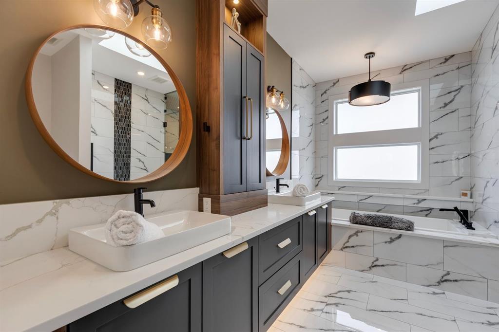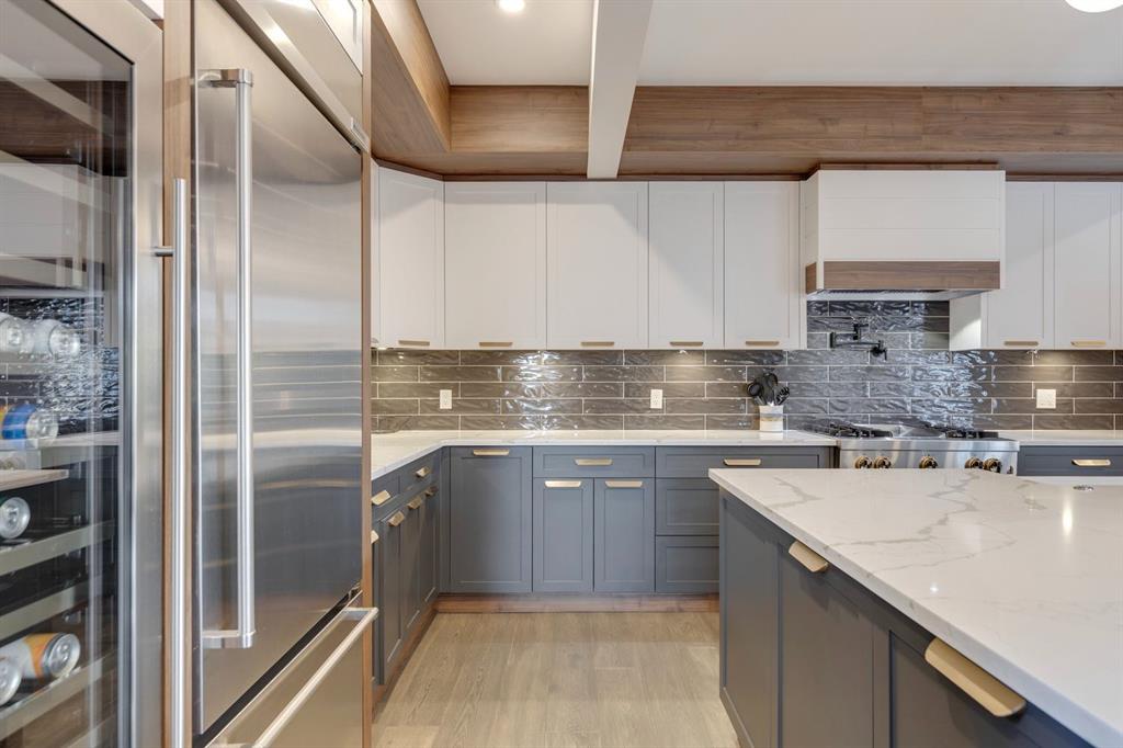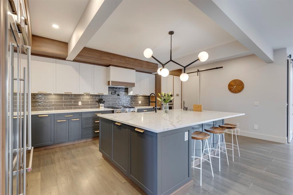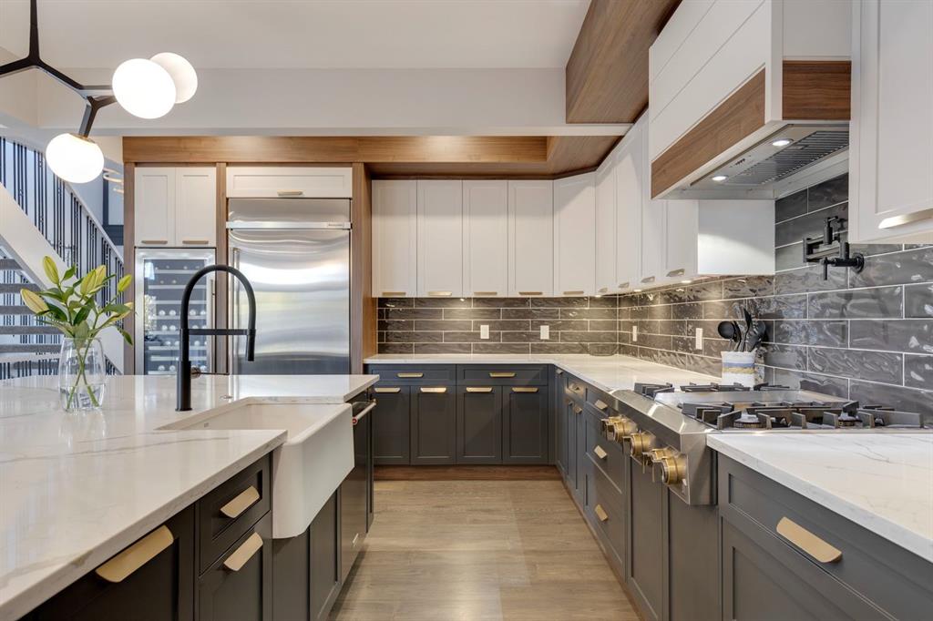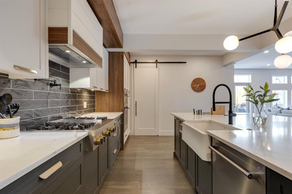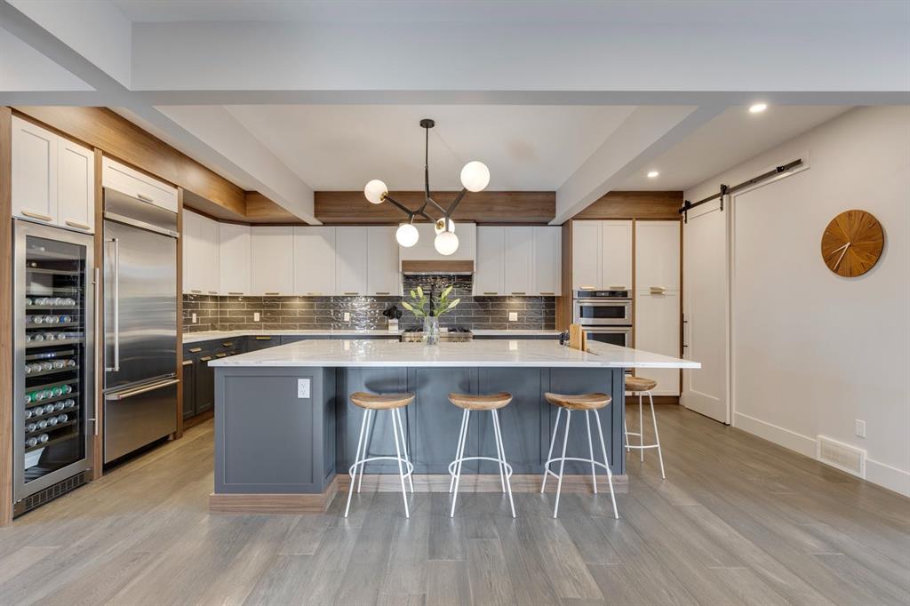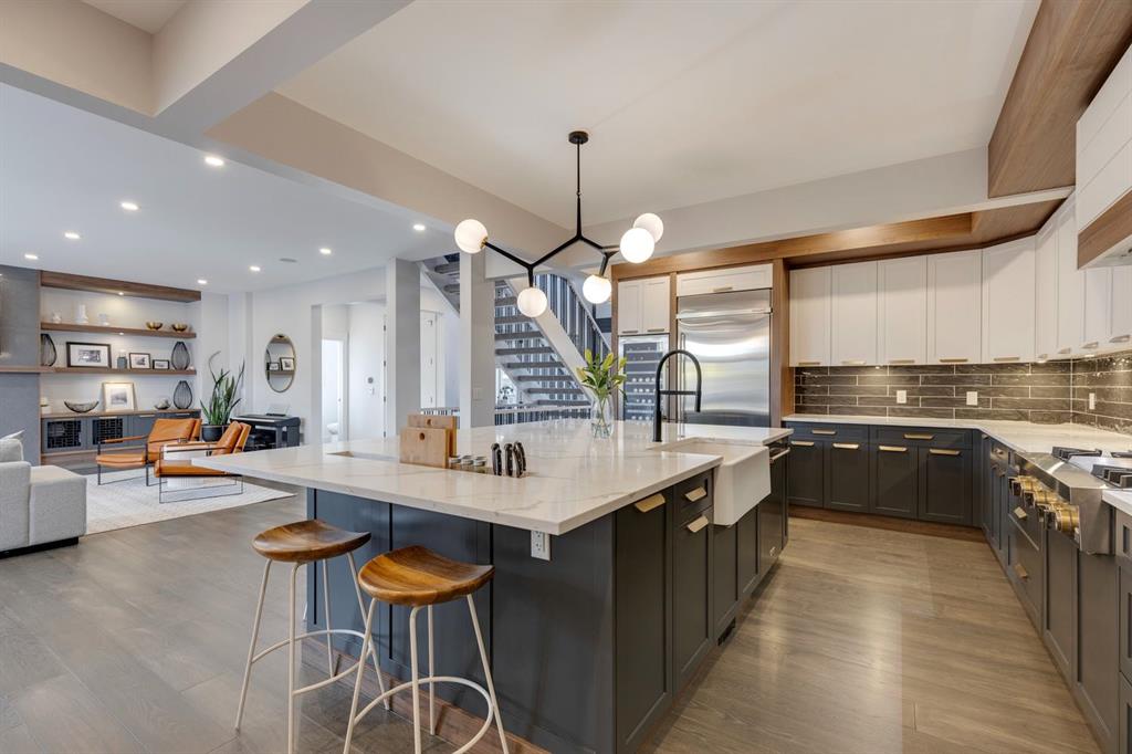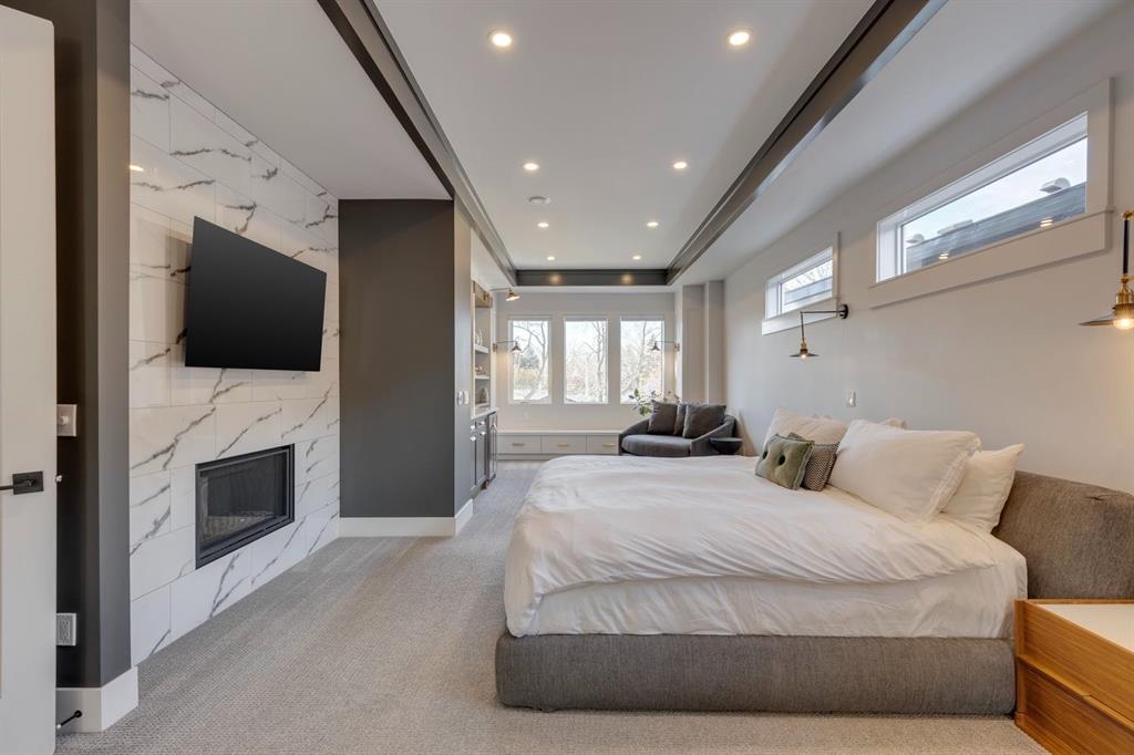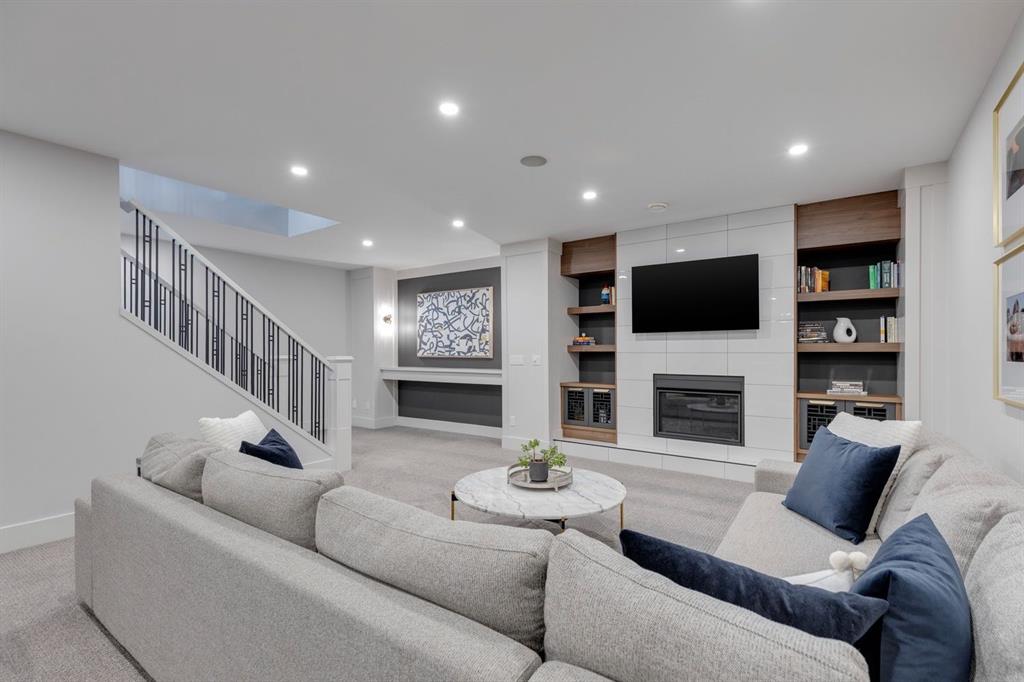 Discover modern elegance and refined living in this custom built architectural showpiece. Designed for families and entertainers alike, every element of this residence blends cutting edge technology, timeless craftsmanship, and a warm, luxurious ambiance that instantly feels like home. From the moment you arrive, you’ll be captivated by the exquisite curb appeal and inviting front porch where you can unwind with a glass of wine and wave to passing neighbours. Step inside to a warm, contemporary interior accented with rich walnut finishes throughout. A culinary enthusiasts dream kitchen is a true centrepiece, featuring an expansive eat-up island, a walk-in pantry, custom cabinetry, built-in appliances, and a massive island with a Zomodo prep sink that transforms seamlessly for entertaining. Designed to impress and inspire, this kitchen effortlessly blends functionality with sophistication, making it ideal for both intimate family meals and lavish entertaining. The open concept main floor invites connection, whether you’re hosting elegant dinner parties or cozy family nights by the fireplace. Extend your living outdoors to a spectacular, multi-tiered deck and beautifully landscaped rear yard, ideal for summer gatherings or peaceful evenings under the stars. Upstairs, the primary suite redefines luxury with a gas fireplace, coffee station with beverage fridge, and large windows framing tranquil views. The lavish ensuite pampers with a large skylight, heated floors, deep soaker tub, steam shower with body sprays, double vanity, and even a heated towel rack for ultimate comfort. Two additional spacious bedrooms, a full bath, and a large laundry room complete the upper level. The lower level presents plush carpets and exceptional versatility with two additional bedrooms (or home gym), a family room and games area, a gorgeous wet bar, and a spacious wine cellar for the wine collecting enthusiast. Located on a quiet, tree-lined street just steps from Confederation Park and the golf course, and moments from the Calgary Winter Club, this home offers an unmatched lifestyle balancing recreation, relaxation, and urban convenience. A true smart home built with integrated voice-controlled Lutron lighting, Nest thermostats, Ring Pro security cameras, and smart irrigation, allowing you to manage your environment from anywhere. Even the triple-car heated garage features belt-drive smart openers for ease and convenience. Built with uncompromising quality and integrity, every element of this home showcases expert craftsmanship, premium materials, and enduring design crafted for families who value beauty, function, and comfort. Make your dreams a reality in a home built to create memories for generations.