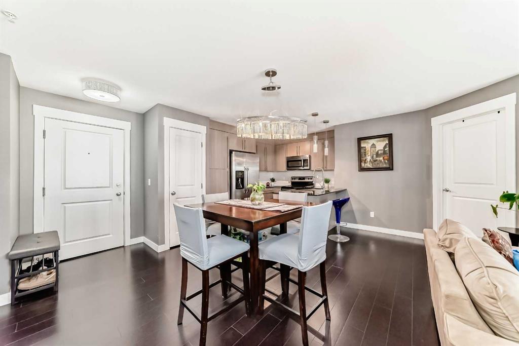 Come and see this bright and beautiful 2 bedroom + 2 bath condo with underground parking in the well sought vibrant lake community of Mahogany. Just a short walk to the lake, restaurants, groceries, clinics, public transport and lots of amenities. This home offers both comfort and convenience in an unbeatable location. This well-maintained unit features two spacious bedrooms, each with generous closet space, and a large 4-piece bathroom. Enjoy the ease of in-suite laundry and an open-concept kitchen and living area—perfect for relaxing or entertaining. Additional highlights include a heated underground titled parking stall and a storage locker conveniently located right behind your parking space.Don’t miss out—contact your favorite realtor today to book your private showing! The open concept design creates a natural flow between the living, dining, and kitchen areas, making the space feel connected while still practical for daily living. Large windows bring in an abundance of natural light, and the private balcony extends the living space outdoors, offering a quiet spot for morning coffee or evening relaxation. The kitchen is equipped with ample cabinetry and counter space, supporting efficient everyday cooking and storage. A thoughtful floor plan separates the bedrooms for added privacy, making the layout well suited for roommates, guests, or a dedicated home office.