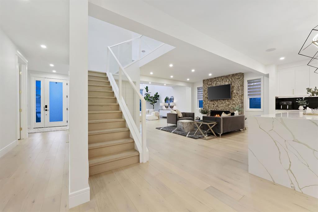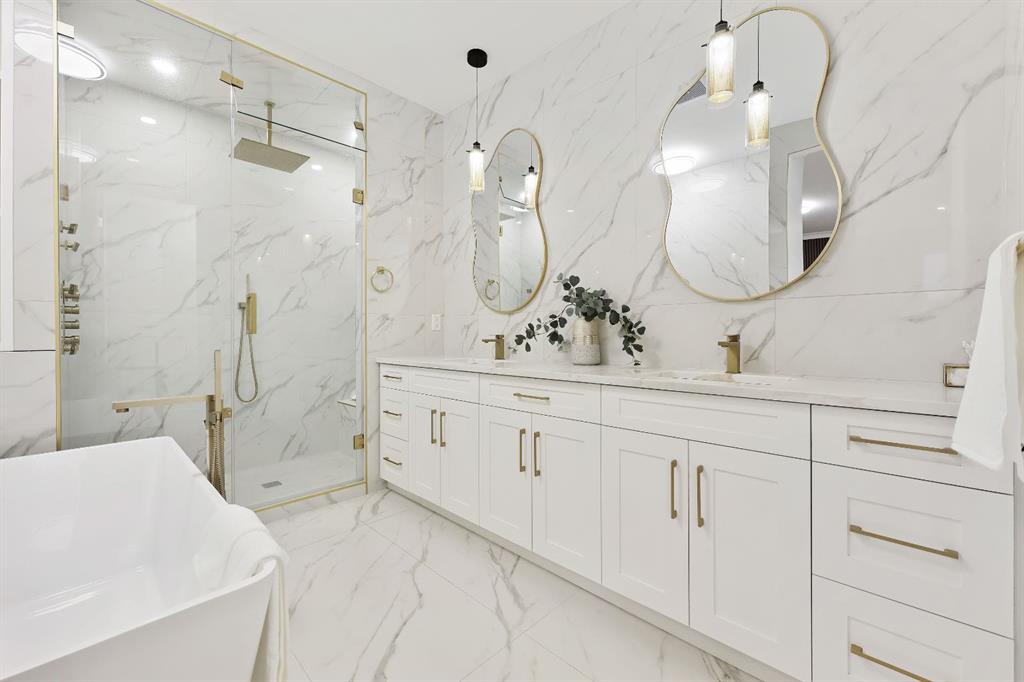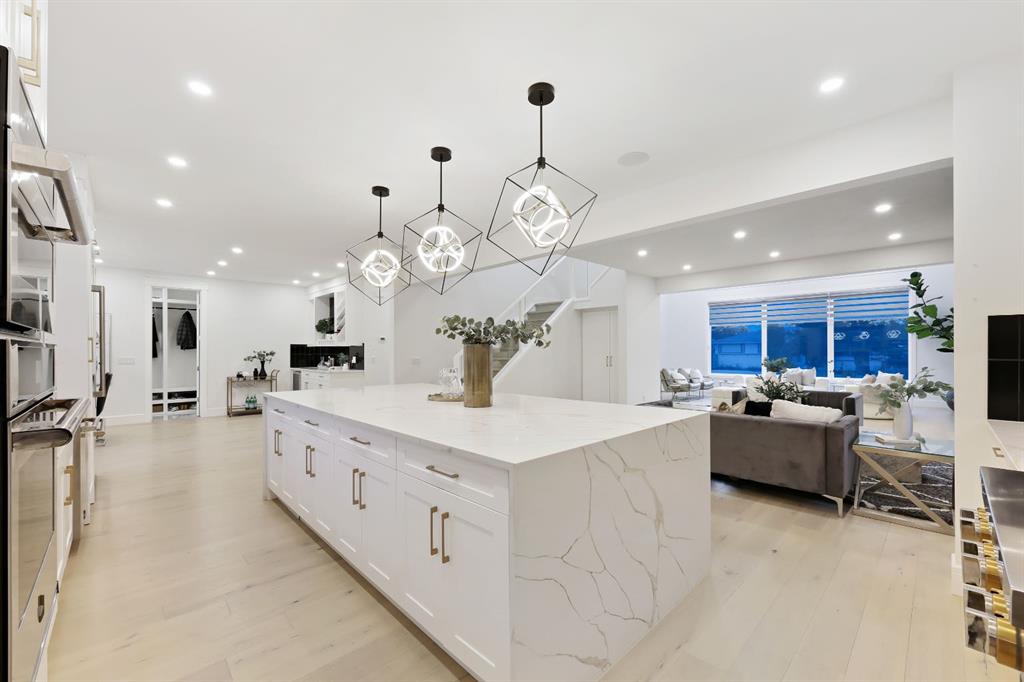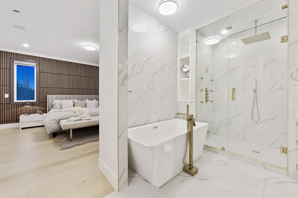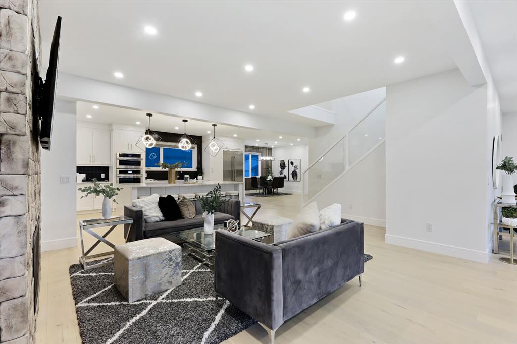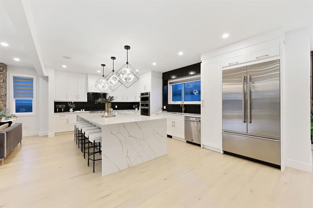 This Modern Art Piece, an exceptional custom-built luxury home located in the heart of Brentwood. Meticulously constructed by the builder as a Modern Master Piece, this home reflects uncompromising craftsmanship, premium materials, and thoughtful design throughout. Offering 7 bedrooms, 5.5 bathrooms, and over 3,600 sq. ft. of well designed living space, plus a fully developed legal basement suite with a private, separate walk-up entrance, This property delivers outstanding versatility and value. The striking contemporary exterior, showcases contemporary brick and Hardie Board finishes, enhanced by professional landscaping and elegant exterior accent lighting. Step inside to be greeted by a dramatic 19-foot ceiling in the main living room with an open-to-below second-storey design, creating a bright and expansive atmosphere. The grand living space is anchored by a custom gas fireplace with stone façade, seamlessly flowing into the gourmet kitchen, with an expensive 10-foot quartz waterfall island which serves as the centre piece perfect for entertaining, complemented by top-of-the-line Jen Air appliances and refined finishes. Adjacent to the kitchen is a stylish dining nook with custom wall paneling, while a thoughtfully designed bar offers an ideal space for evening hangouts or serving guests. A private back entry leads to a functional mudroom. The main floor also features a bedroom with its own 3-piece ensuite, ideal to entertain guests, or for extended family needs, along with another 2-piece designer powder room. Upstairs, enjoy an open bonus room overlooking the living area, framed with modern glass railings, The upper level boasts two luxurious primary bedrooms, each with spa-inspired en-suites featuring floor-to-ceiling ceramic tile, in-floor heating, and premium lavatories throughout. one with steam shower, and a free standing soaker tub, The fully developed basement with 9ft ceiling, includes a legal suite with two bedrooms, a full bathroom, a kitchen with shaker-style cabinetry, complete appliance package, and its own full-sized washer and dryer, The other portion of the basement offers roughed-in plumbing, ready for Customization to suit your lifestyle needs. The home is equipped with three separate furnaces, providing efficient climate control for each level. The backyard features two single-car garages, along with a finished lawn to complete the outdoor space.The location is truly unbeatable—just steps from Brentwood LRT Station, Brentwood Village, Northland Mall, and K–12 schools. The University of Calgary is only minutes away, and quick access to Crowchild Trail ensures effortless commuting while remaining tucked away ,completely peaceful and quite, An outstanding property with exceptional build quality, modern luxury, and an unbeatable lifestyle in one of Calgary’s most sought-after communities.