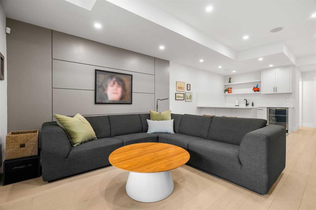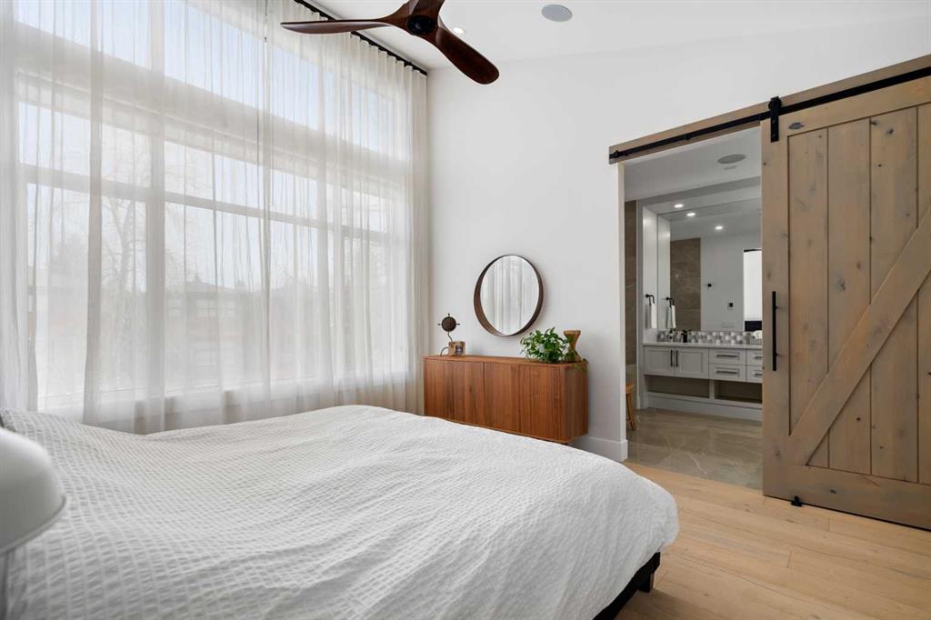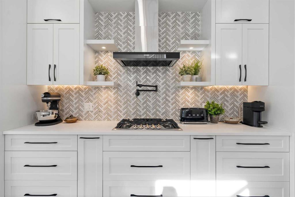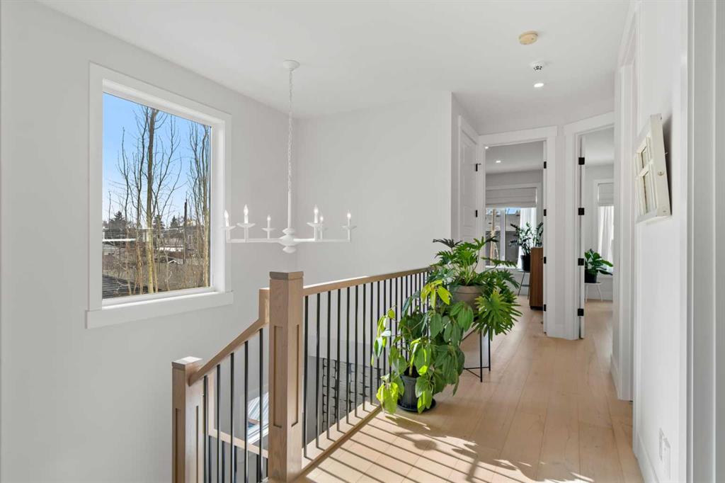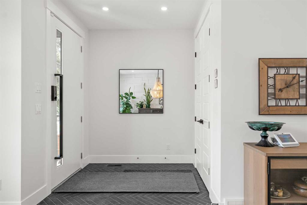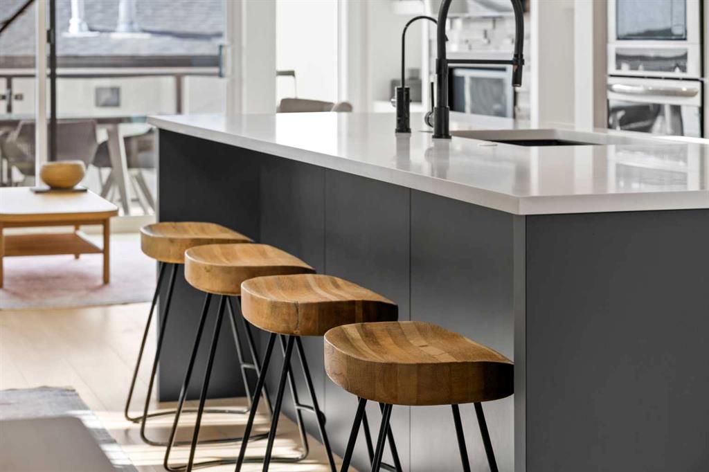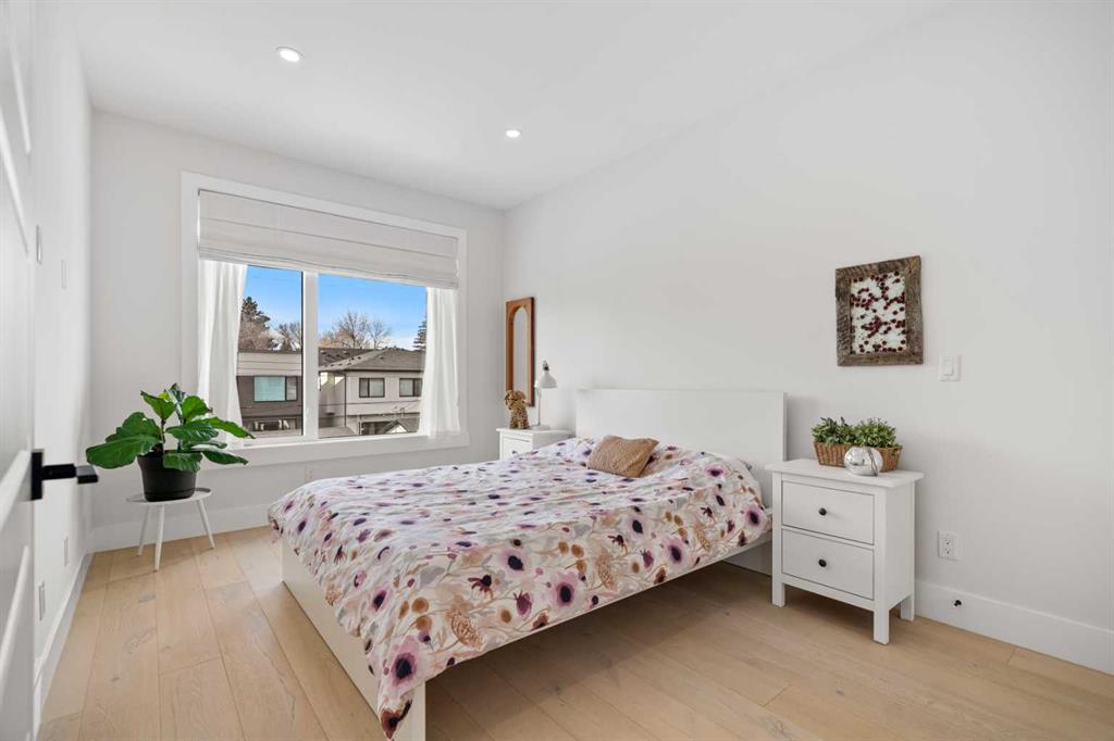 Welcome to this exceptional modern family home in the heart of the inner city, where thoughtful design and upscale finishes combine to create a truly refined living experience. Perfectly positioned to take advantage of both sunrise and sunset views, this beautifully crafted residence showcases meticulous attention to detail throughout. Step inside to a professionally curated interior featuring soaring 9-foot ceilings on two levels, wide-plank hardwood flooring spanning all three levels, and elegant marble tile accents. Restoration Hardware lighting paired with recessed lighting creates a warm and sophisticated atmosphere, while built-in speakers add to the home’s modern comfort. The designer kitchen is both stunning and highly functional, outfitted with professional-grade appliances including a gas cooktop, built-in oven and microwave, chimney-style range hood, and an impressive side-by-side refrigerator and freezer. Quartz countertops, floor-to-ceiling cabinetry, under-cabinet lighting, and abundant storage ensure the space is as practical as it is beautiful. Designed for effortless day-to-day living, the home also includes custom storage solutions throughout, a central vacuum system, and central air conditioning. The inviting living room features a striking marble-tiled fireplace framed by custom built-in cabinetry and shelving. Expansive floor-to-ceiling windows and a sliding patio door fill the space with natural light while seamlessly connecting the interior to the sunny west-facing backyard. A stylish powder room completes the main level. Upstairs, the primary suite offers a luxurious private retreat with soaring ceilings and a spa-inspired five-piece ensuite. Heated marble floors, a double vanity, a large steam shower with rain shower head, and an expansive walk-in closet create a space designed for relaxation. Two additional spacious bedrooms, a beautifully appointed main bathroom, and a conveniently located laundry room complete the upper level. The walk-out basement continues the home’s impressive design with nearly 9-foot ceilings and comfortable in-floor radiant heating. This level is ideal for entertaining, featuring a generous recreation room with a wet bar, a large fourth bedroom, and an additional bathroom perfect for guests or extended family. A well-designed mudroom with extensive storage adds even more functionality. Step outside to enjoy the private, low-maintenance backyard oasis. The heated saltwater pool can be warmed to hot-tub temperatures or used as an exercise pool with the training tether for fitness enthusiasts. Surrounding decking and professional landscaping create an inviting outdoor space for relaxing or entertaining. Completing the property is a heated and insulated double detached garage and beautifully landscaped front yard. Situated on a quiet street in the desirable inner-city community of Glenbrook, this home offers outstanding convenience with a short walk to all nearby amenities, plus quick access to Marda Loop.