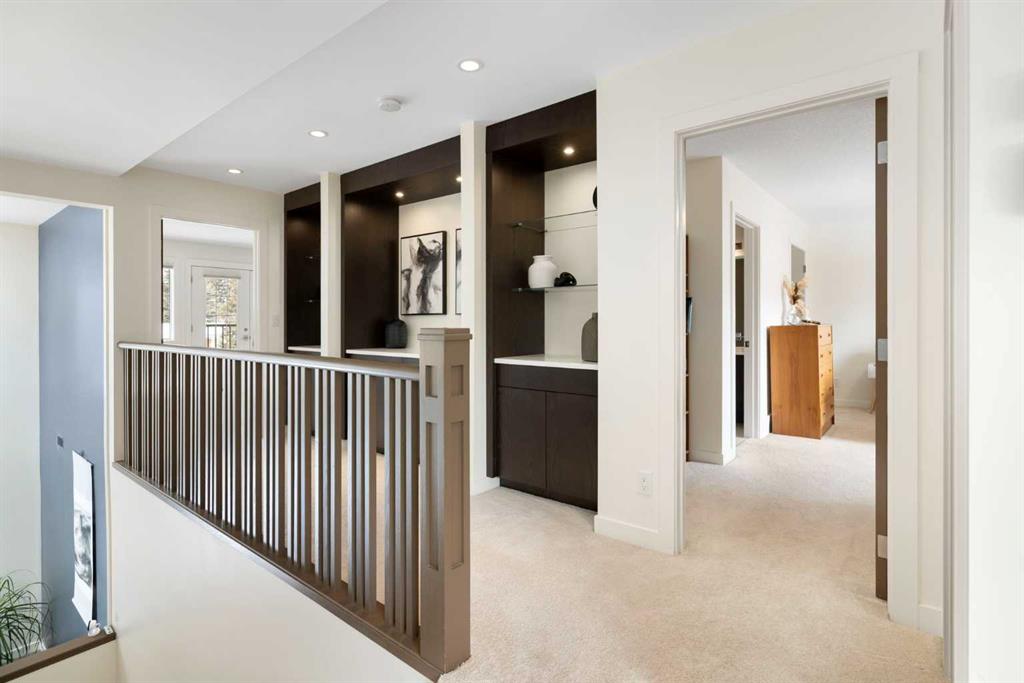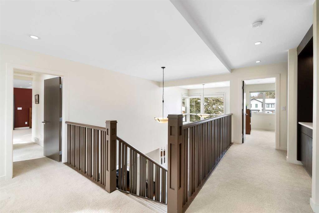Welcome to an architecturally distinguished residence in the heart of University Heights, completely rebuilt in 2013! A rare offering designed for those who value modern luxury and enduring quality. Conceived by an internationally acclaimed, award-winning architect, this home reflects a timeless design philosophy inspired by Frank Lloyd Wright, blending open-concept living with harmonious integration of indoor and outdoor spaces. Set on an expansive quarter-acre lot with desirable alley access, this exceptional property is tucked within a quiet cul-de-sac, offering a rare combination of privacy and convenience. The meticulously landscaped grounds are framed by mature elms, lilacs, and aspens, while expansive floor-to-ceiling windows and thoughtfully positioned decks create a seamless dialogue between the home’s refined interiors and its tranquil, park-like surroundings—evoking a serene, almost meditative atmosphere. Inside, the residence is defined by soaring ceilings, abundant natural light, and clean, sophisticated architectural lines. The flexible structural design—featuring engineered trusses and steel beam construction—allows for future customization, ideal for evolving needs. Every material and finish has been curated for both aesthetic excellence and performance. Exterior elements include durable Hardie cement board and rich stained red cedar, complemented by energy-efficient double- and triple-glazed windows. The interior showcases Canadian solid walnut hardwood flooring, Italian porcelain tile, and premium finishes throughout. The chef’s kitchen, imported from Germany by Poggenpohl, is outfitted with top-tier appliances, seamlessly integrated storage, and a discreet pantry—perfect for both entertaining and everyday functionality. The home’s layout is thoughtfully designed for balance and comfort. The main level offers elegant yet inviting spaces for hosting and daily living, while the upper level features three generously sized bedrooms, including a refined primary suite with a spa-inspired ensuite. A versatile lower level provides two additional bedrooms, a full bath, a spacious recreation area, and ample storage—well-suited for guests, extended family, or private study. Advanced mechanical systems, including high-efficiency furnaces, a tankless water heating system, and superior insulation, ensure year-round comfort with a focus on sustainability and energy performance. Ideally located, the home is walking distance to the vibrant University District, offering an array of restaurants, boutique shops, and everyday amenities. It is also within walking distance to both Foothills Medical Centre and Alberta Children’s Hospital, and enjoys close proximity to the University of Calgary. Families will appreciate the nearby access to Westmount Charter School, one of Calgary’s most sought-after academic institutions. A truly singular property—where design, location, and lifestyle converge.