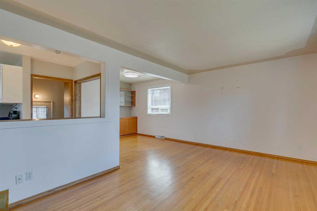 Welcome to a solid bungalow on a fantastic corner lot in Glenbrook—perfectly positioned with paved lanes on two sides and just steps from the community centre. This home offers a practical layout that feels open and comfortable the moment you step inside. A small entry area keeps jackets and shoes organized before you move into the bright living room, where large windows, a detailed ceiling design, and a wraparound flow toward the dining area help the space feel connected and social. The dining room includes a built-in cabinet for added function, and the kitchen features a pass-through opening to the living room plus extra storage. Down the hallway, the primary bedroom provides plenty of room and closet space, while the second bedroom features sliding doors leading directly to the back deck—great for airflow and easy outdoor access. A shared 4-piece bathroom completes the main floor.
