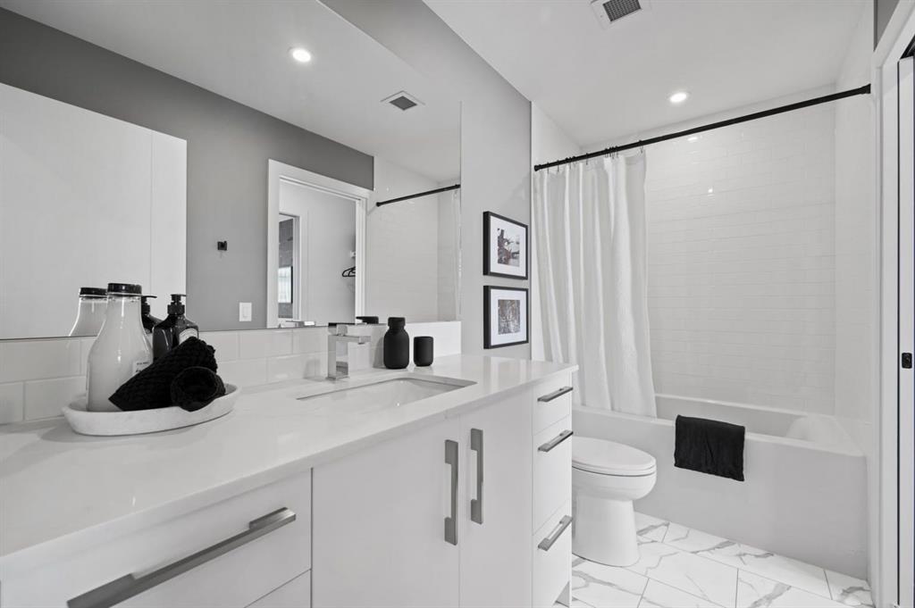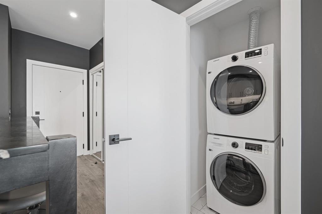 This 2-bedroom, 1-bathroom condo is a smartly designed space that balances style and functionality, making it an excellent choice for urban professionals, couples, or savvy investors. The open-concept layout is filled with natural light, offering a contemporary flow that maximizes efficiency in every square foot. The streamlined kitchen features quartz countertops, full-height cabinetry, and premium stainless steel appliances—all connected seamlessly to the bright, airy living area, perfect for hosting friends or unwinding after work. Both bedrooms are designed with comfort and flexibility in mind—ideal for restful nights, a productive work-from-home setup, or accommodating guests. The sleek 4-piece bathroom is finished with clean, modern details, combining function with a spa-inspired feel. Additional features include one titled underground parking stall and access to exclusive resident amenities such as a fully equipped fitness centre, co-working lounge, secure bike storage, and a beautifully landscaped private terrace. Just steps from boutique shops, cafés, acclaimed dining, scenic river pathways, LRT stations, and Calgary’s downtown core, Frontier offers exceptional value and location for those looking to live or invest in one of the city’s most vibrant communities. *Photo Gallery of Similar Unit*