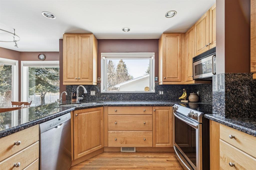 This home is all about location, location, location! Presenting a valuable opportunity in University Heights, this exceptional two-storey family home is perfectly positioned on a quiet cul-de-sac and walking distance to the many exciting new amenities of University District, Westmount Charter School, University Elementary and located across the street from U of C. Not to mention a hop, skip and a jump from Market Mall, McMahon Stadium, Foothills Hospital, Children’s Hospital, and very easy access to Downtown Calgary! This well-appointed property, offering 4+1 bedrooms and 2600 sq ft of developed living space, is the perfect choice for young and growing families looking to put down roots in the community. The main floor is designed with charming hardwood floors, a comfortable living space, dining room, and sizable kitchen with an eating area. It is a well thought out floor plan to enjoy as-is, or plan a more open concept renovation. The present owners did a major renovation in 2000-2001 as the house was in its original form. The kitchen is located at the back of the home with plenty of windows and sunlight, overlooking the beautiful west-exposed backyard where you can watch your kids play. The large deck off the side of the home is a bright spot for entertaining and enjoying warm, sunny days. The upper floor presents 4 well-sized bedrooms plus a large laundry room, full bathroom and ensuite. Tons of space to be used accordingly, with the option of renovating for a modernized look. The basement is inviting with a second gas fireplace, 5th bedroom (window meeting egress), full bathroom, cold room and a storage room. If all of this isn’t enough, you will find comfort in knowing that many of the main cost items of this fabulous home have been updated. Windows all throughout the home are approx. 2001, furnace 2021, water softener 2020, HWT 2018, and the additional, oversized double detached garage (built approx. 10 years ago) provides extra storage space and/ or cars. With 2 double garages and a front parking pad that accommodates four cars, this home can park 8 vehicles. Both attached and detached double garages are heated for year round comfort, and provide ample storage options for busy families alike! This property combines convenience and connectivity being in close proximity to excellent schools that families will appreciate. Combining comfort, location, and lifestyle, this is a rare opportunity to own a home that truly has it all, in one of Calgary’s finest neighbourhoods.
